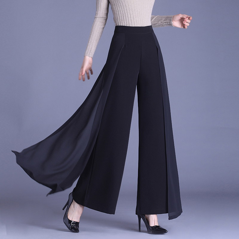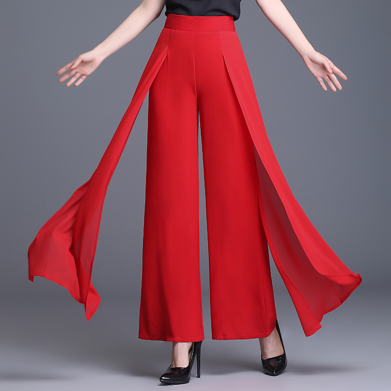 新款高腰阔腿裤女夏季宽松裙裤气质舞蹈裤走秀裤长裤雪纺垂坠飘逸