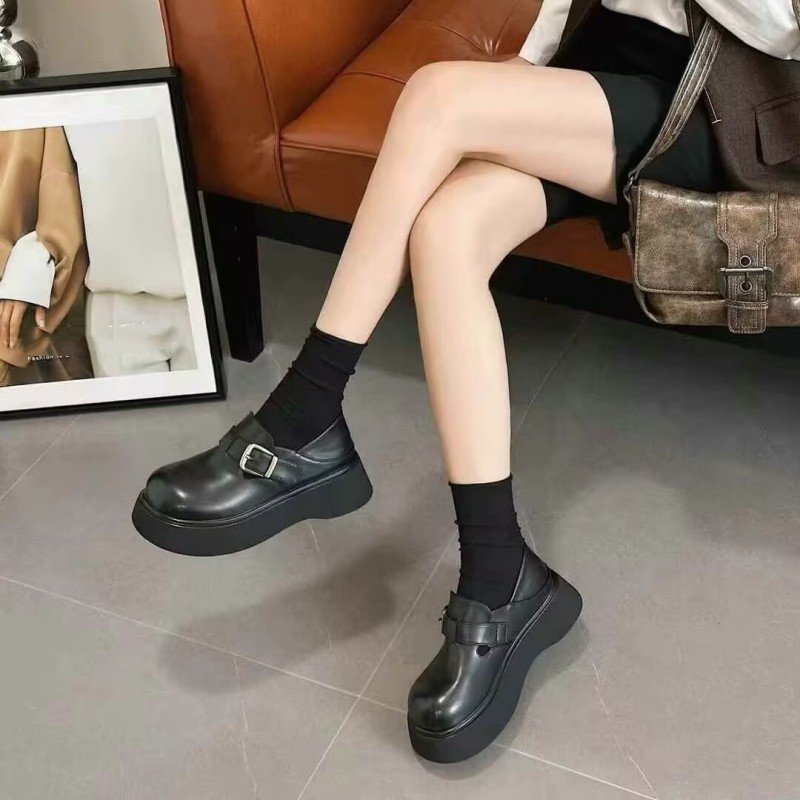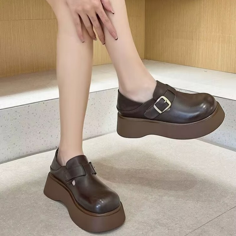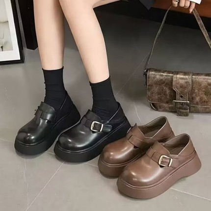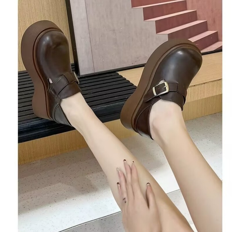 真皮!厚底乐福鞋!专柜撤柜圆头两穿英伦风小皮鞋女5C14-272072