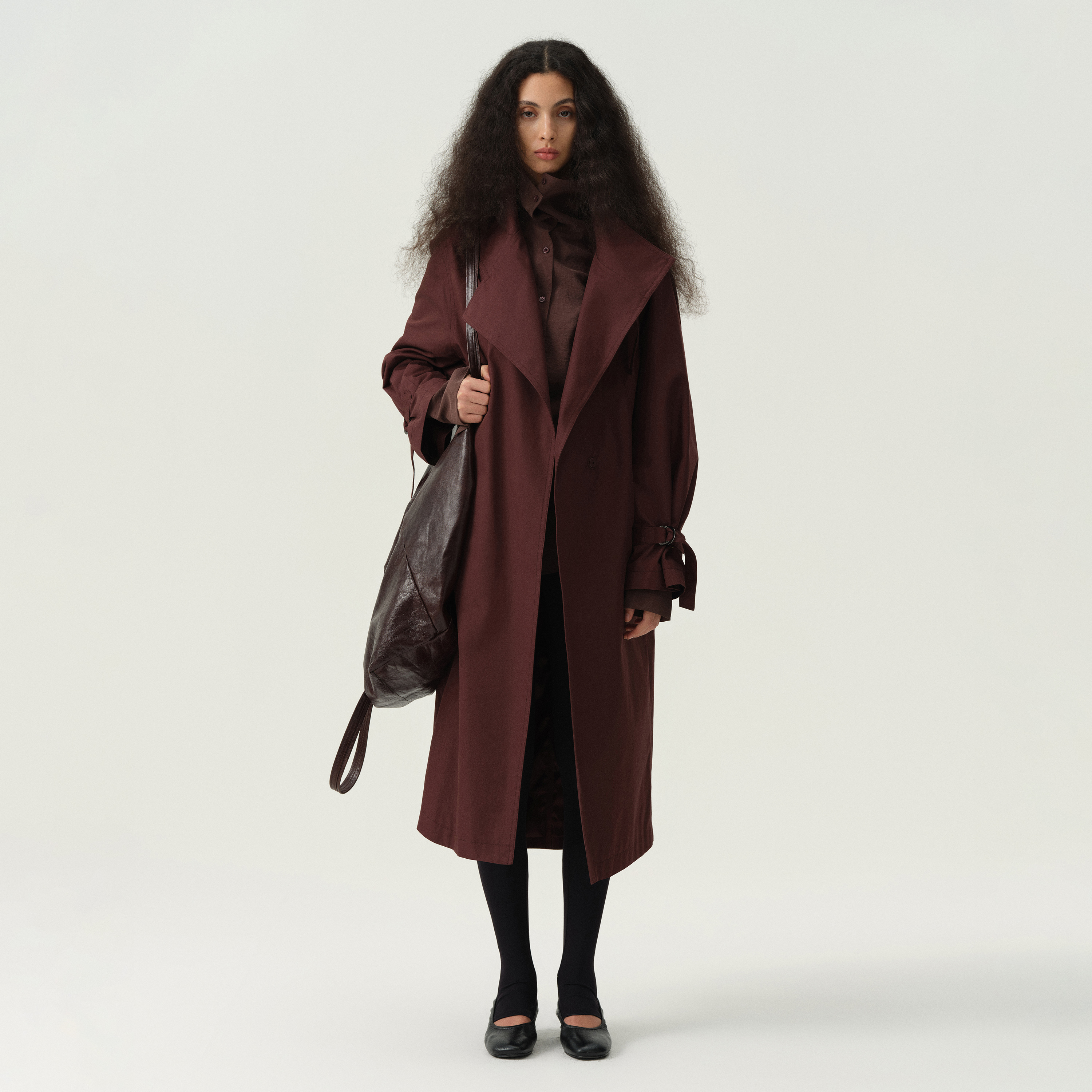 白弓2024年秋新款英伦风经典王牌版型廓形中长款风衣外套女50985