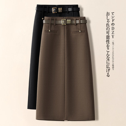 安可拉红毛呢a字半身裙女2026春秋新款高端时尚中长款直筒包臀裙