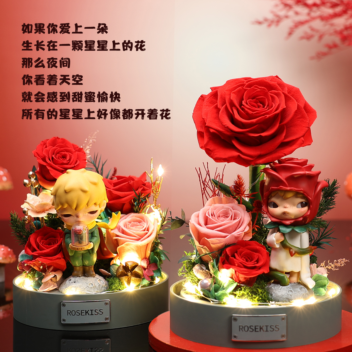 正版小王子永生花礼盒玫瑰花束情人节送女友新婚结婚生日礼物摆件