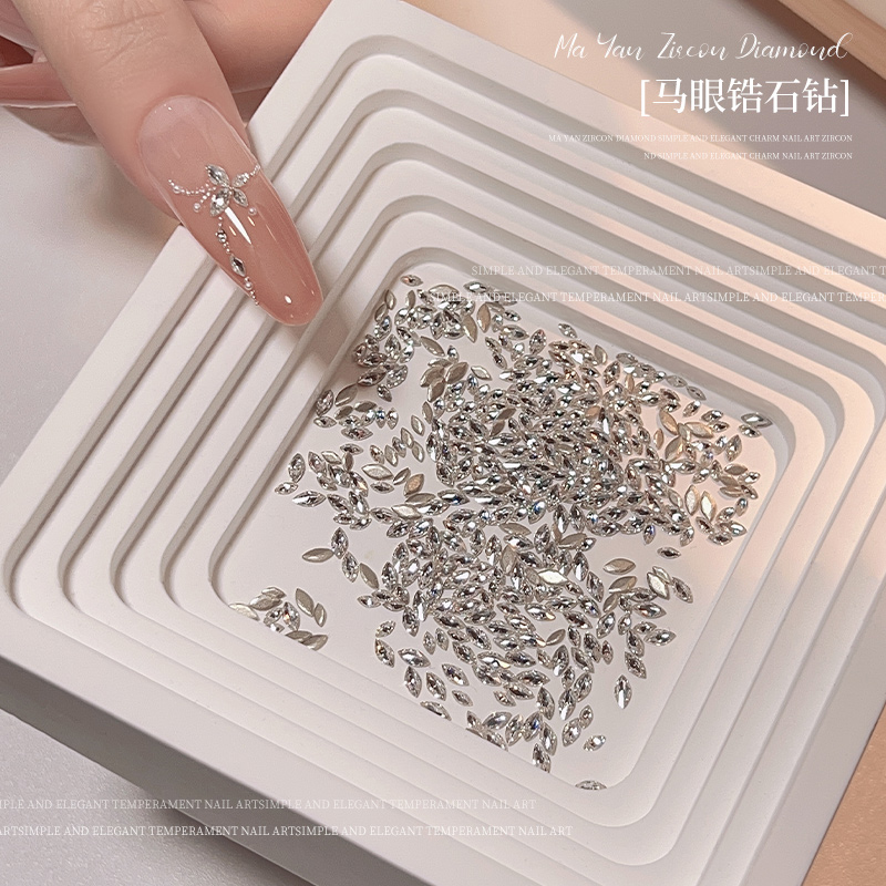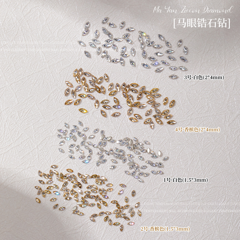 网红爆闪马眼锆石美甲钻香槟白色小号平底钻指甲装饰品DIY小配件