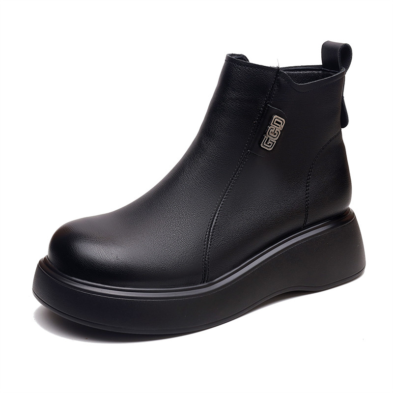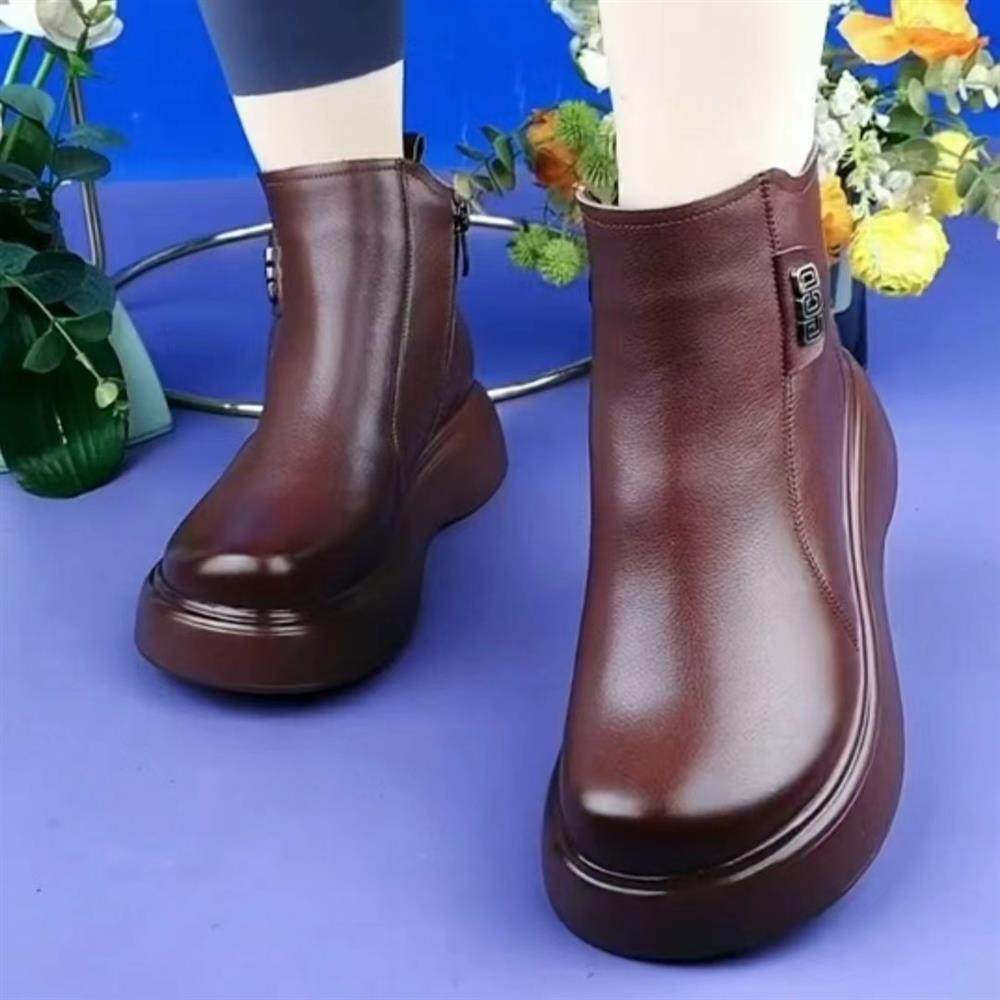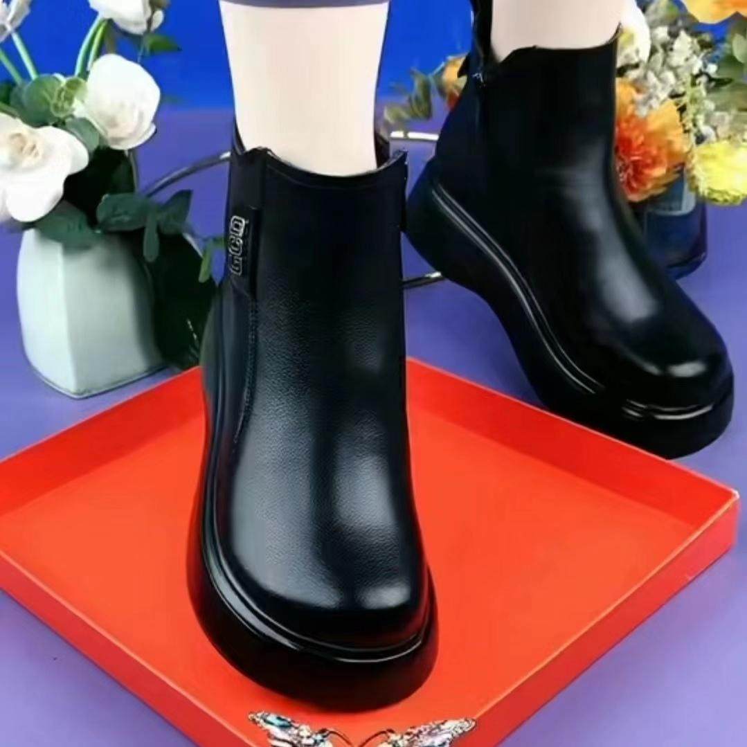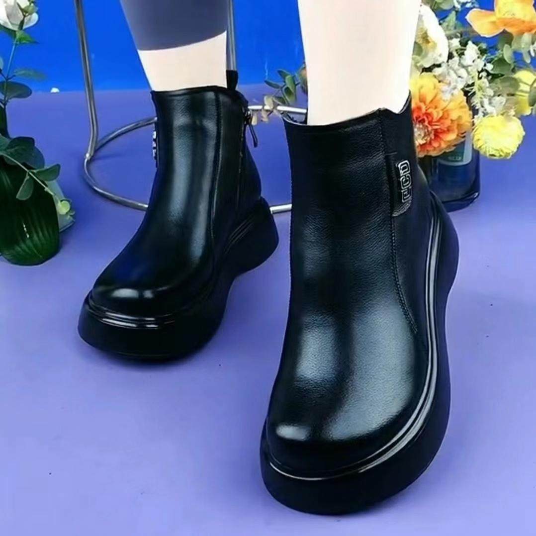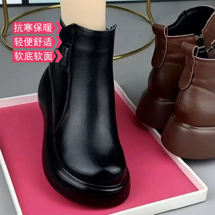 软皮马丁靴女2025年秋冬季新款保暖圆头厚底加绒女靴羊毛短靴棉靴
