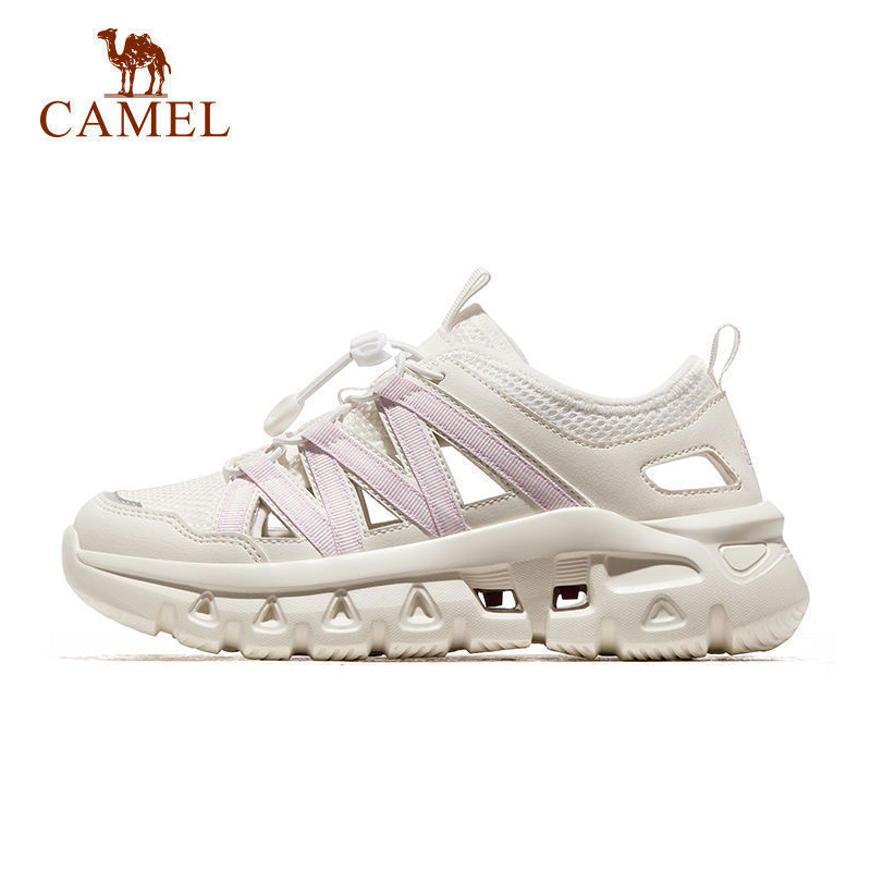 骆驼女鞋2025春季新款透气运动老爹凉鞋女镂空户外厚底耐磨休闲鞋