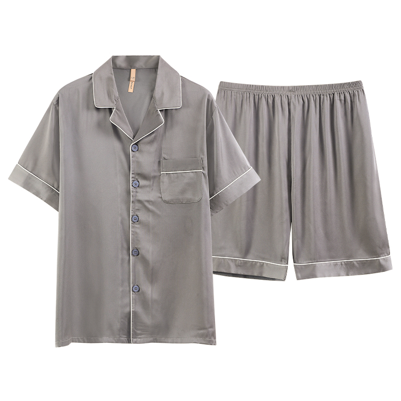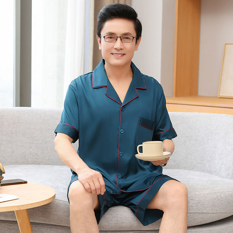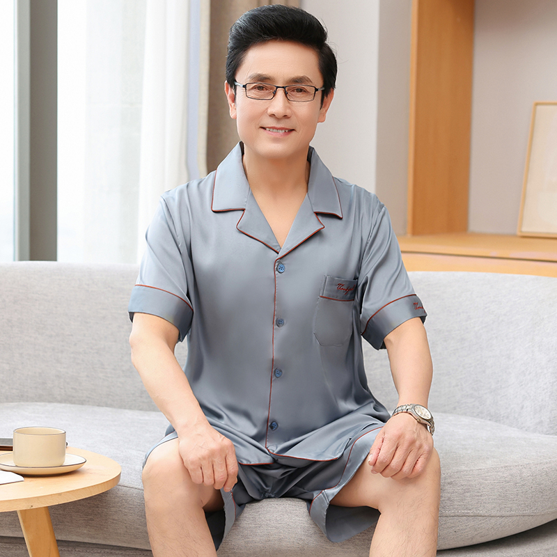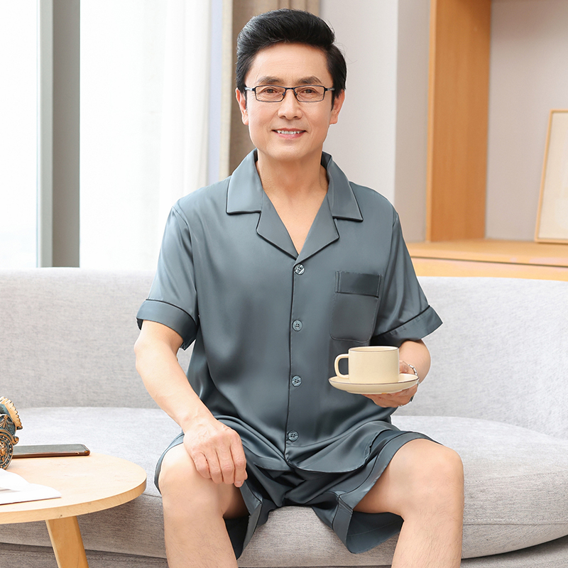中年男士丝绸睡衣夏季薄款短袖短裤冰G丝爸爸家居服加大码真丝套