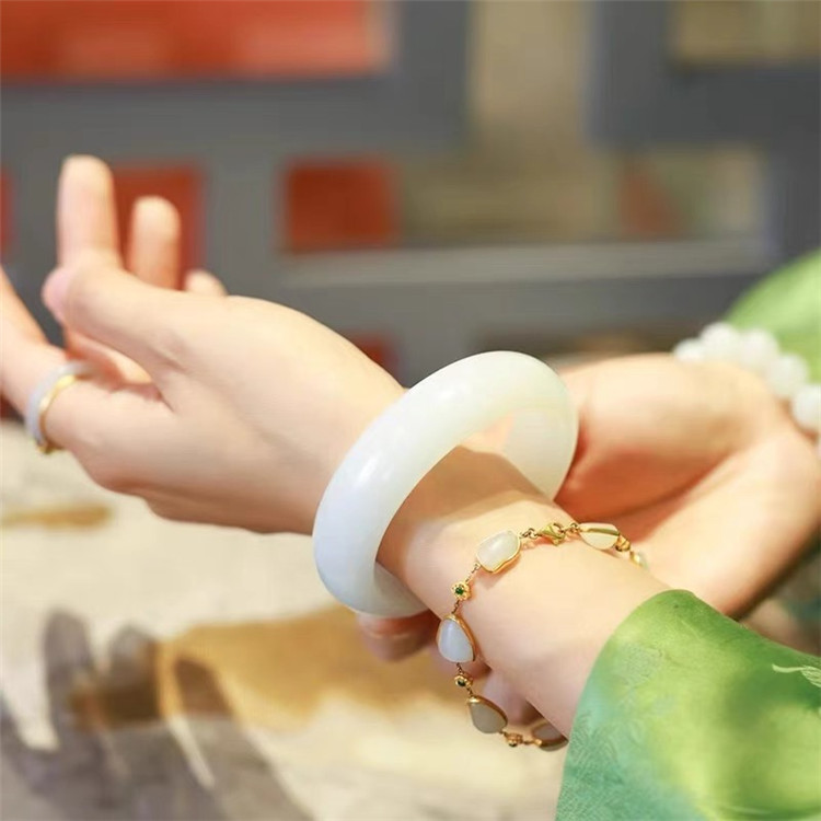 精品 天然和田玉俄料白玉糖白手镯油润感好 女款中高端玉镯饰品