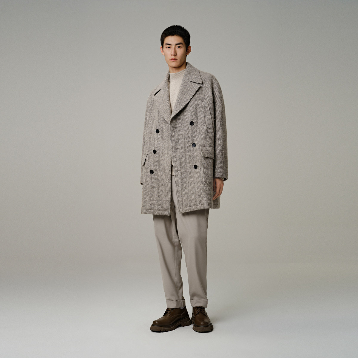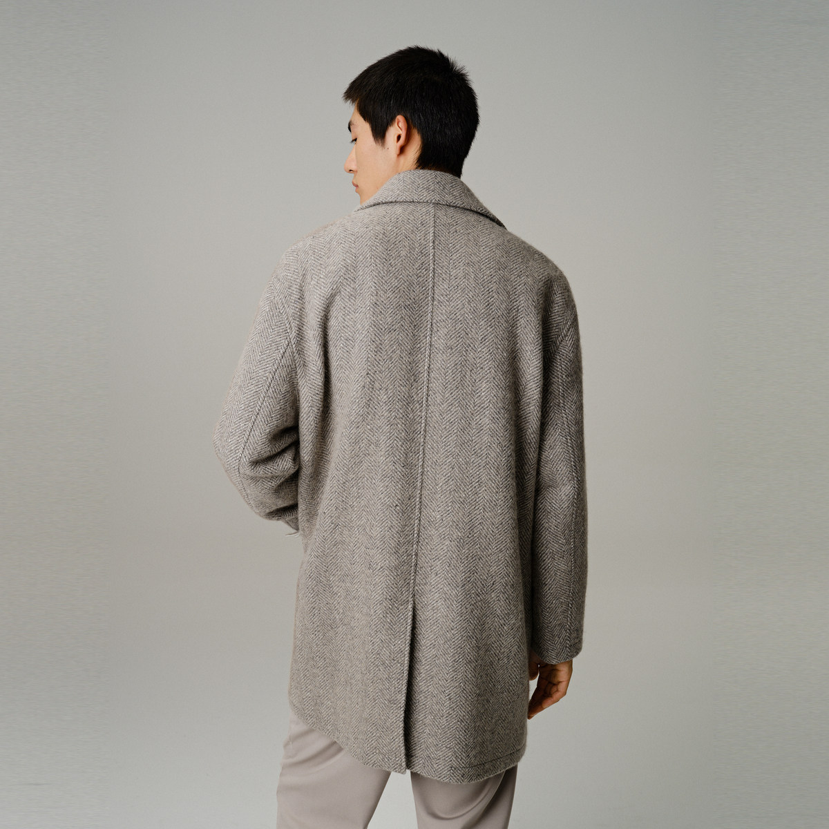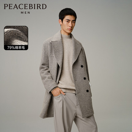 【断码钜惠】太平鸟男装人字纹毛呢大衣宽松羊毛呢外套B2AAD4104