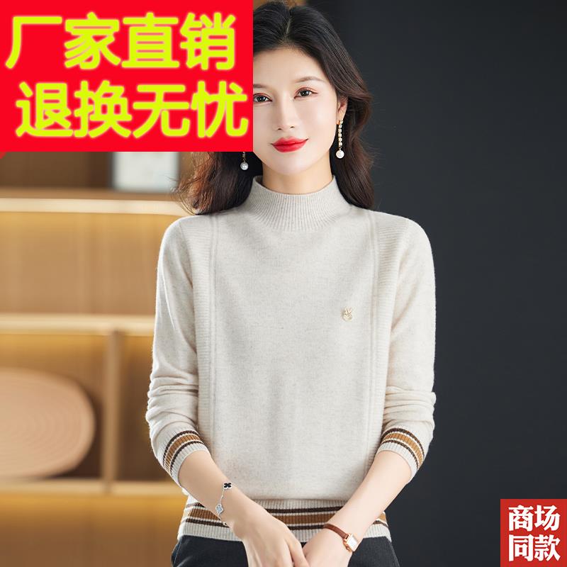 100%纯羊毛衫女士毛衣秋冬新款宽松半高领内搭中年妈妈针织打底衫