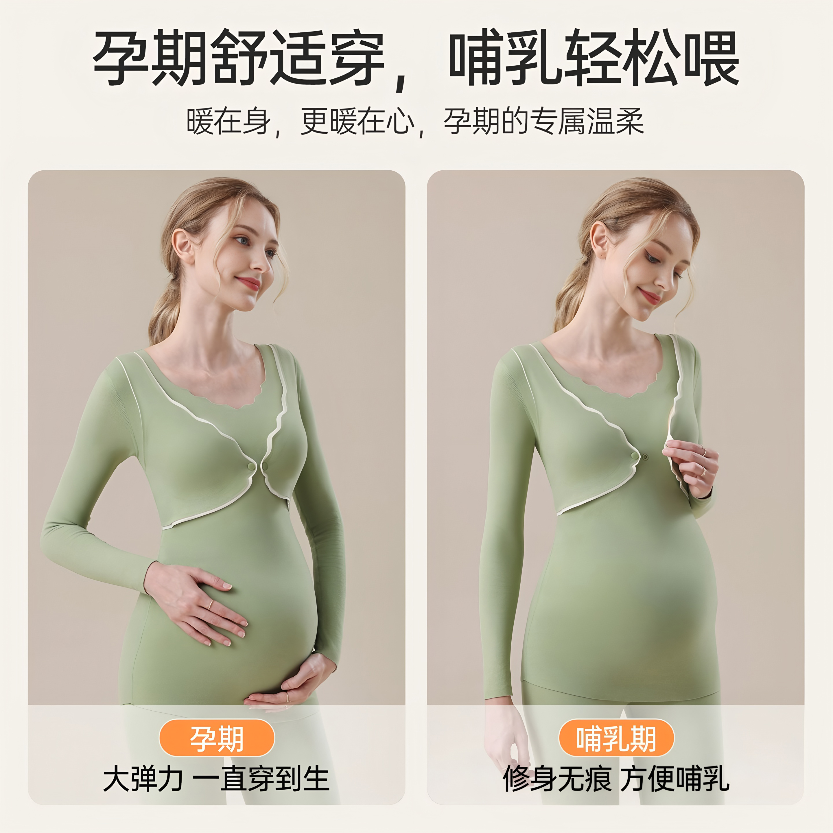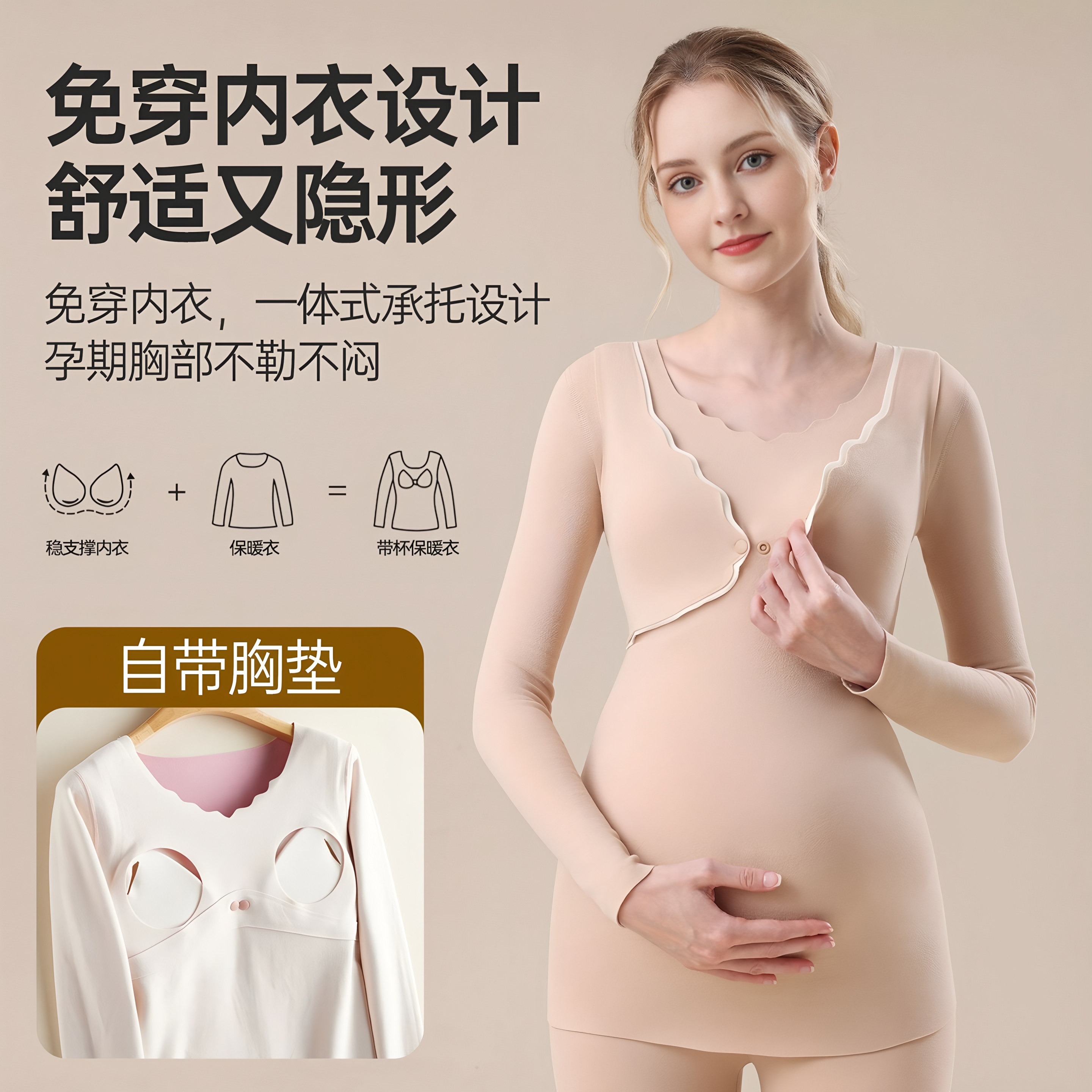 孕妇秋衣秋裤套装带胸垫孕期保暖内衣月子服产后喂奶哺乳上衣睡衣