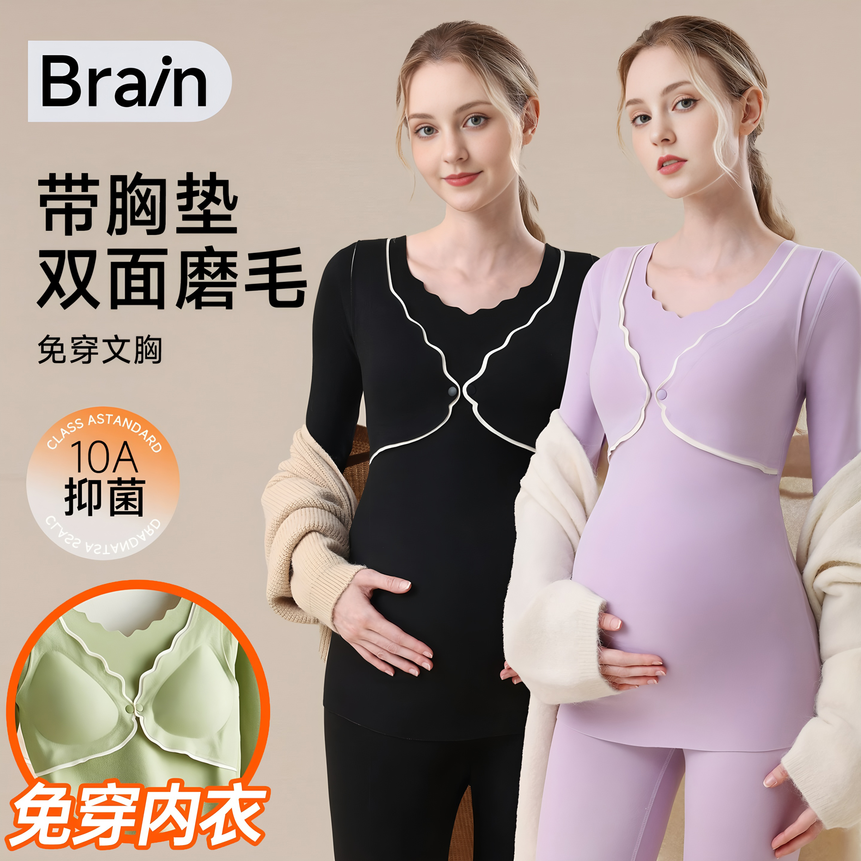 孕妇秋衣秋裤套装带胸垫保暖内衣