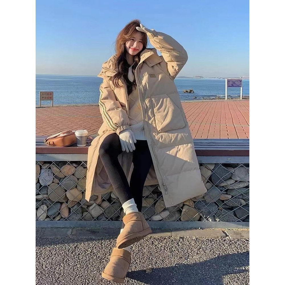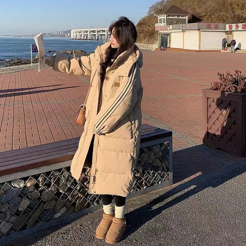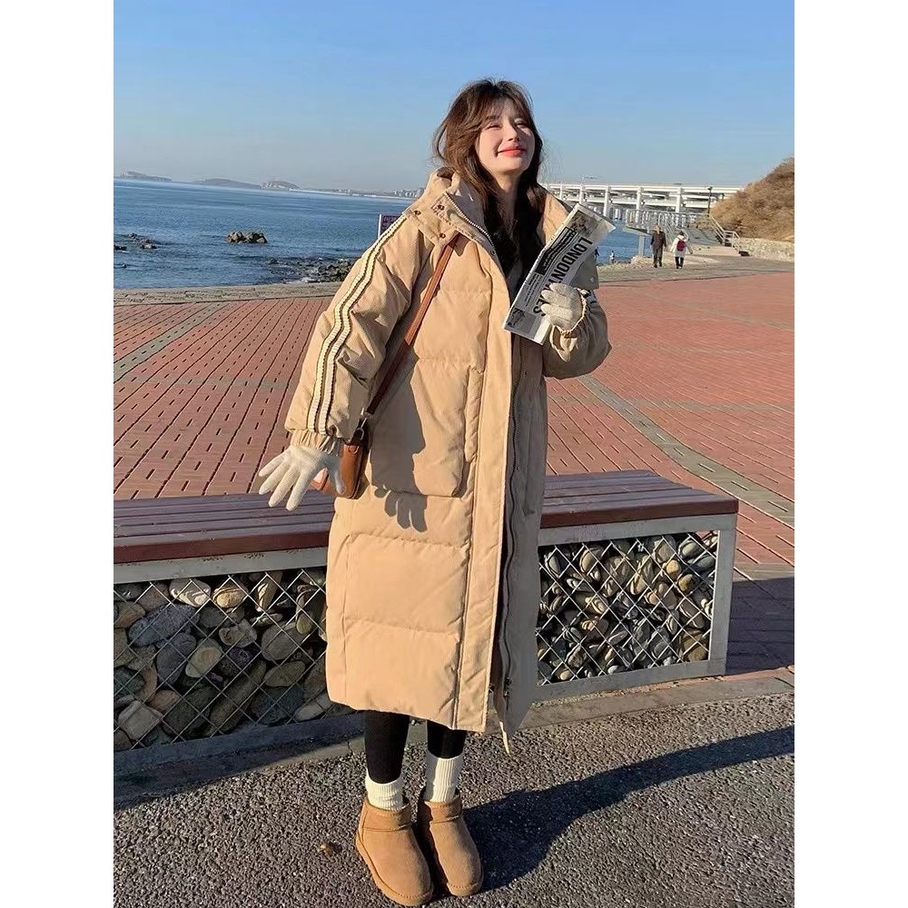 学院风韩系连帽棉服外套女中长款2024年冬季新款过膝加厚棉衣棉袄