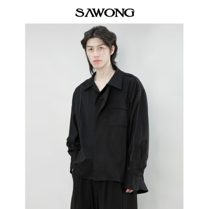 SAWONG 秋季新款原创暗黑设计师款山本风中性日系宽松休闲衬衫男
