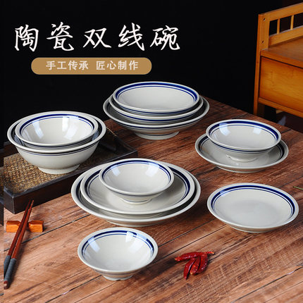 老式复古陶瓷双线碗土碗小碗商用蒸碗扣肉碗火锅小碗面碗调料碗
