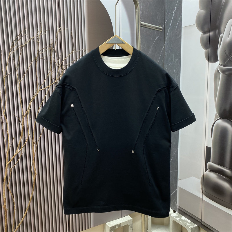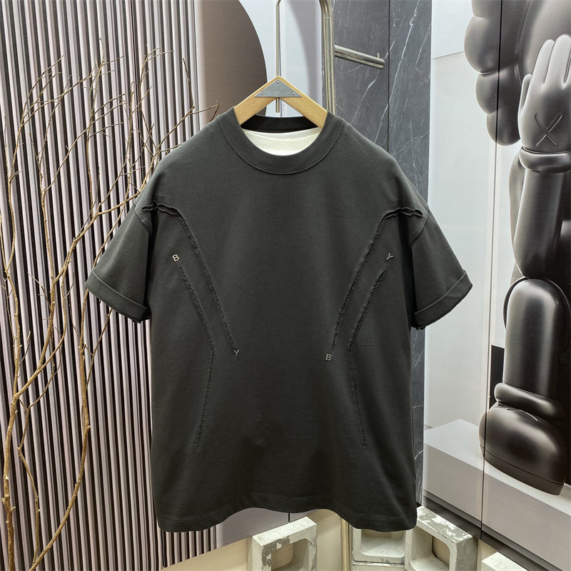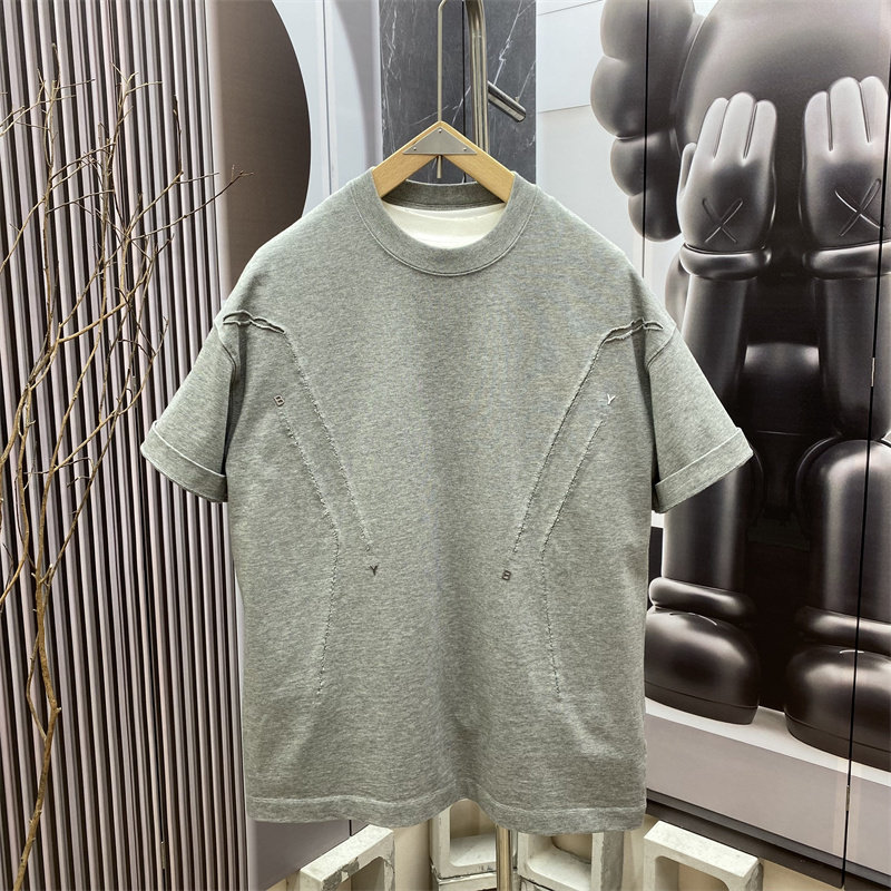 2026春夏季新款美式重磅设计感拼接圆领短袖T恤男士宽松潮牌半袖