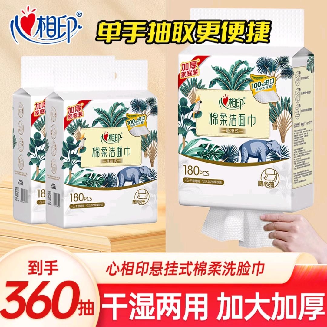 心相印悬挂式洗脸巾一次性抽取式纯棉棉柔巾加大加厚珍珠纹洁面巾