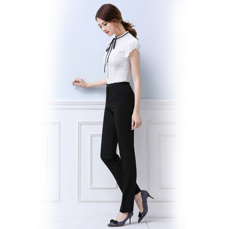 西装裤女高腰职业裤黑色直筒高腰珠宝店无口袋前台工作正装长裤