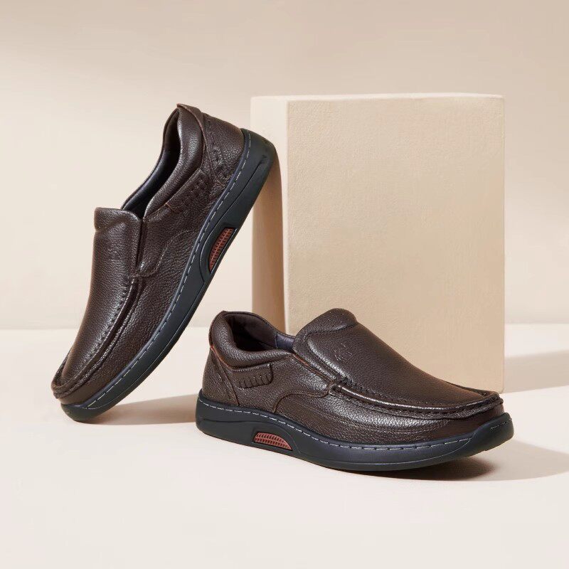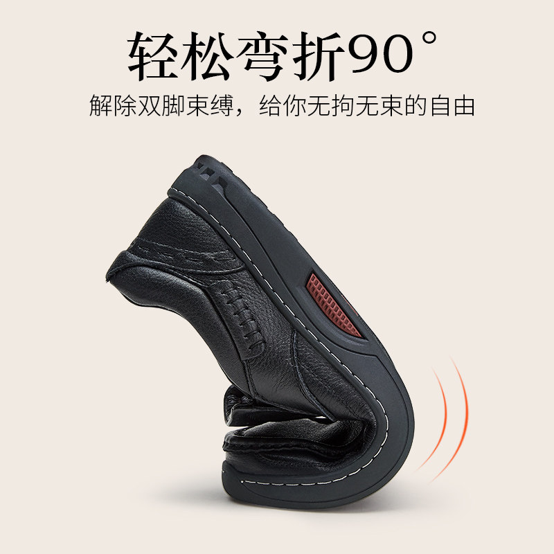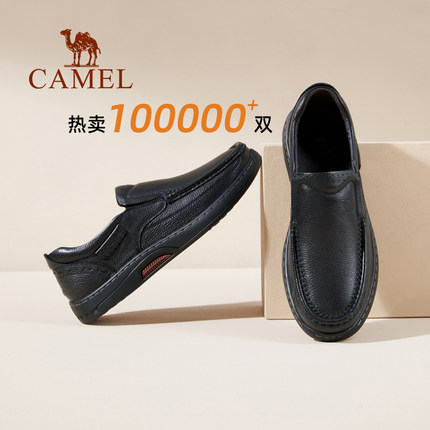 骆驼男鞋2026春季舒适透气真皮软底一脚蹬休闲皮鞋商务中年爸爸鞋