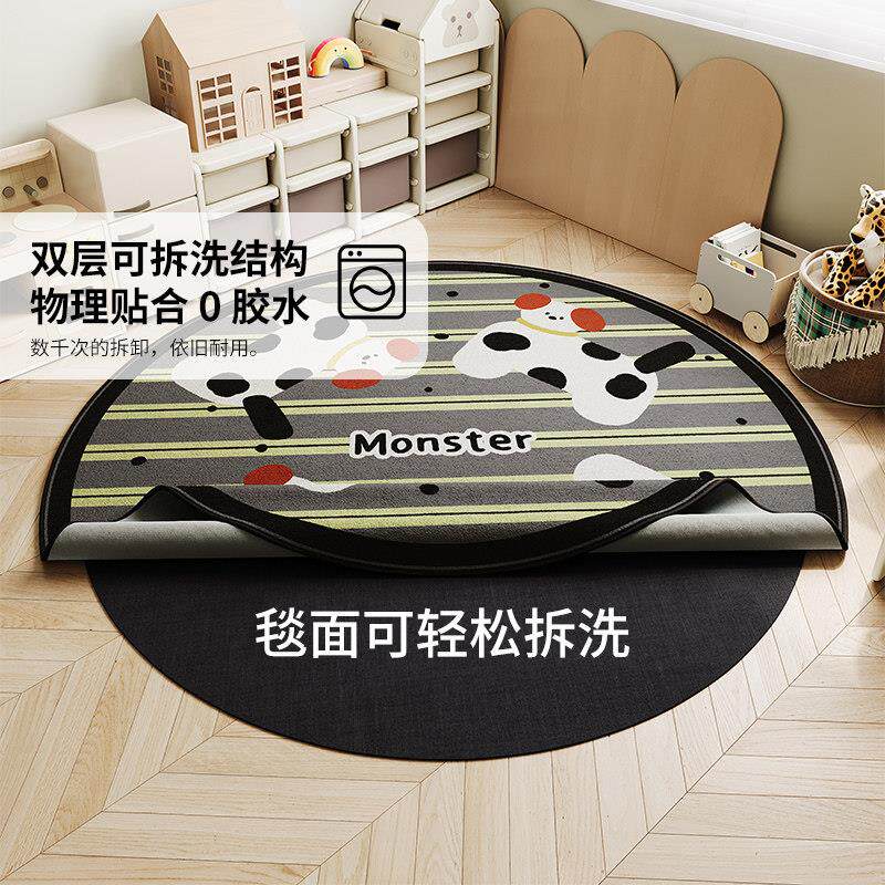 双层可拆洗圆形地毯客厅轻奢高级床边毯卧室2025新款家用隔音地垫