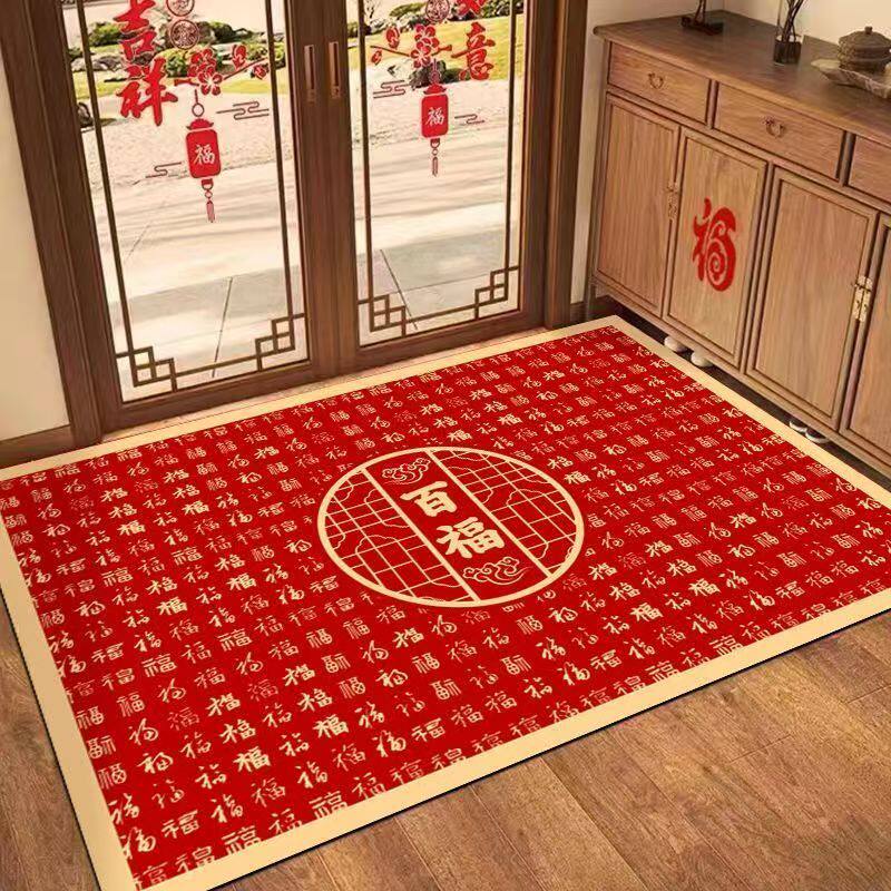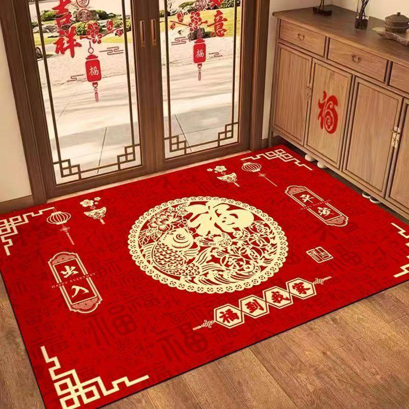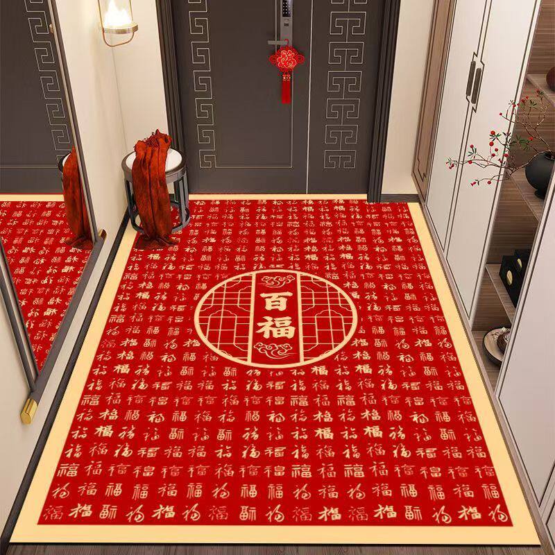 红色喜庆硅藻泥入户门玄关处地垫耐脏蹭土免洗可擦满铺可裁剪中式