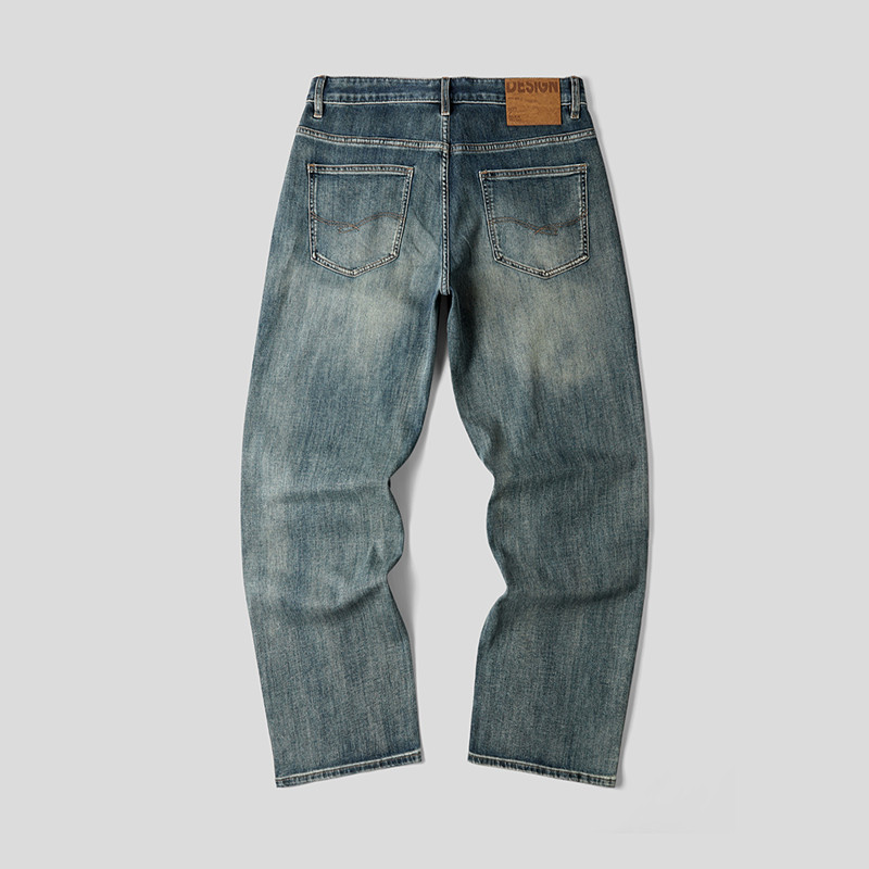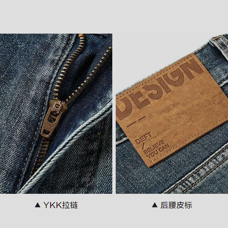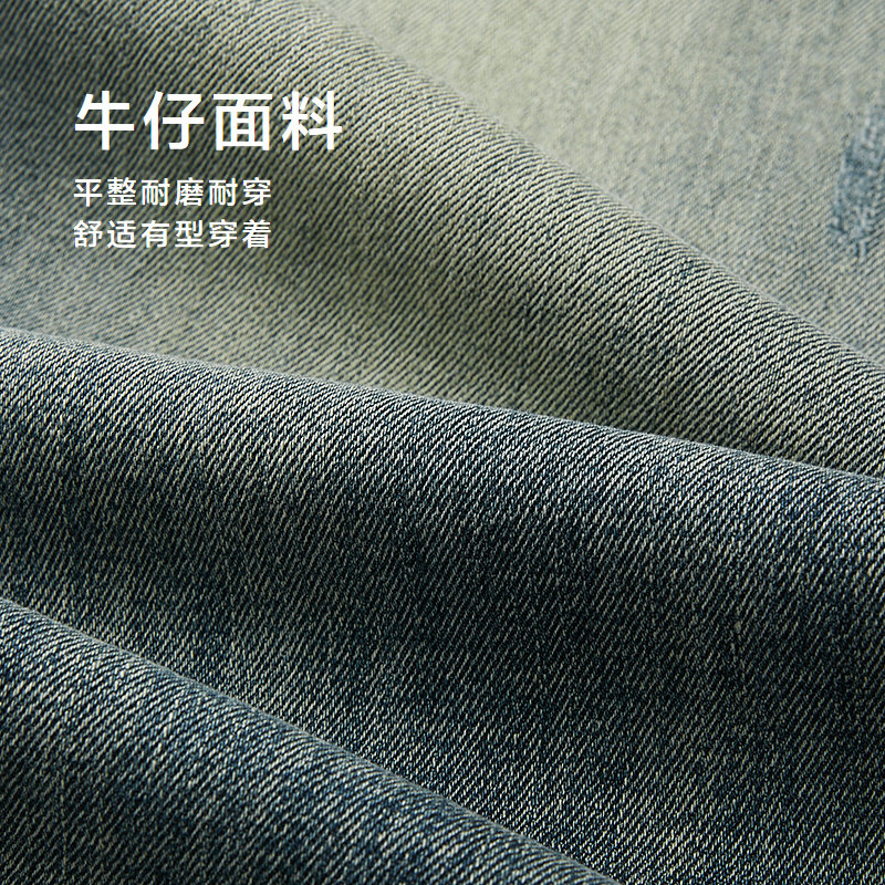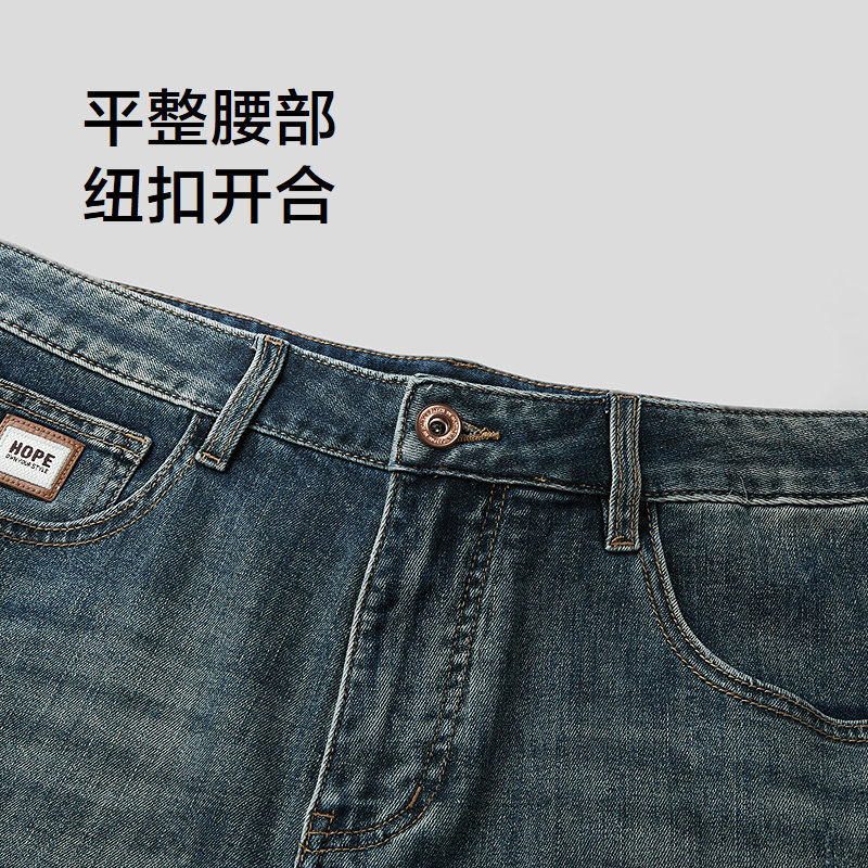 HLA/海澜之家复古时尚牛仔裤2026春夏宽松绣花微弹休闲裤子男