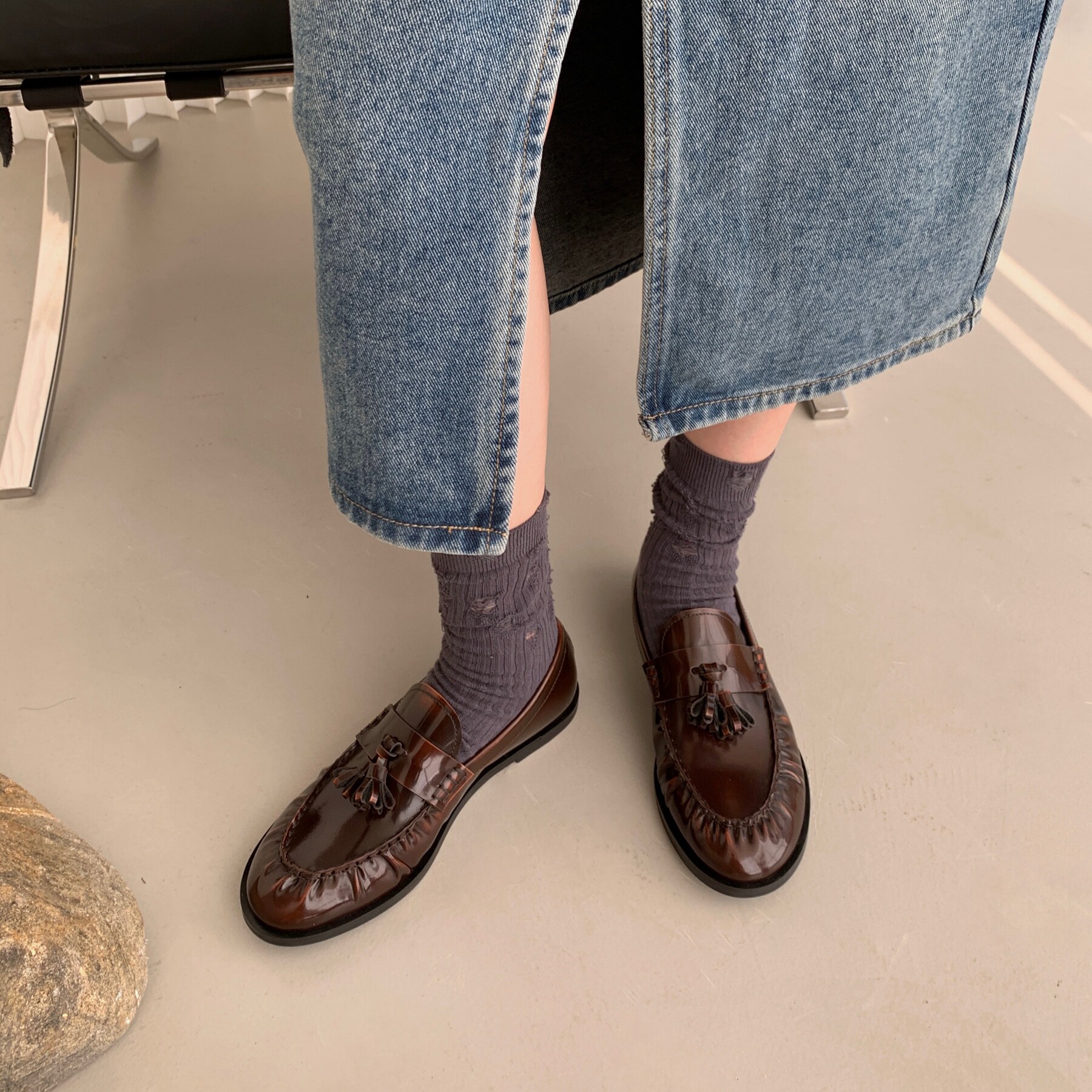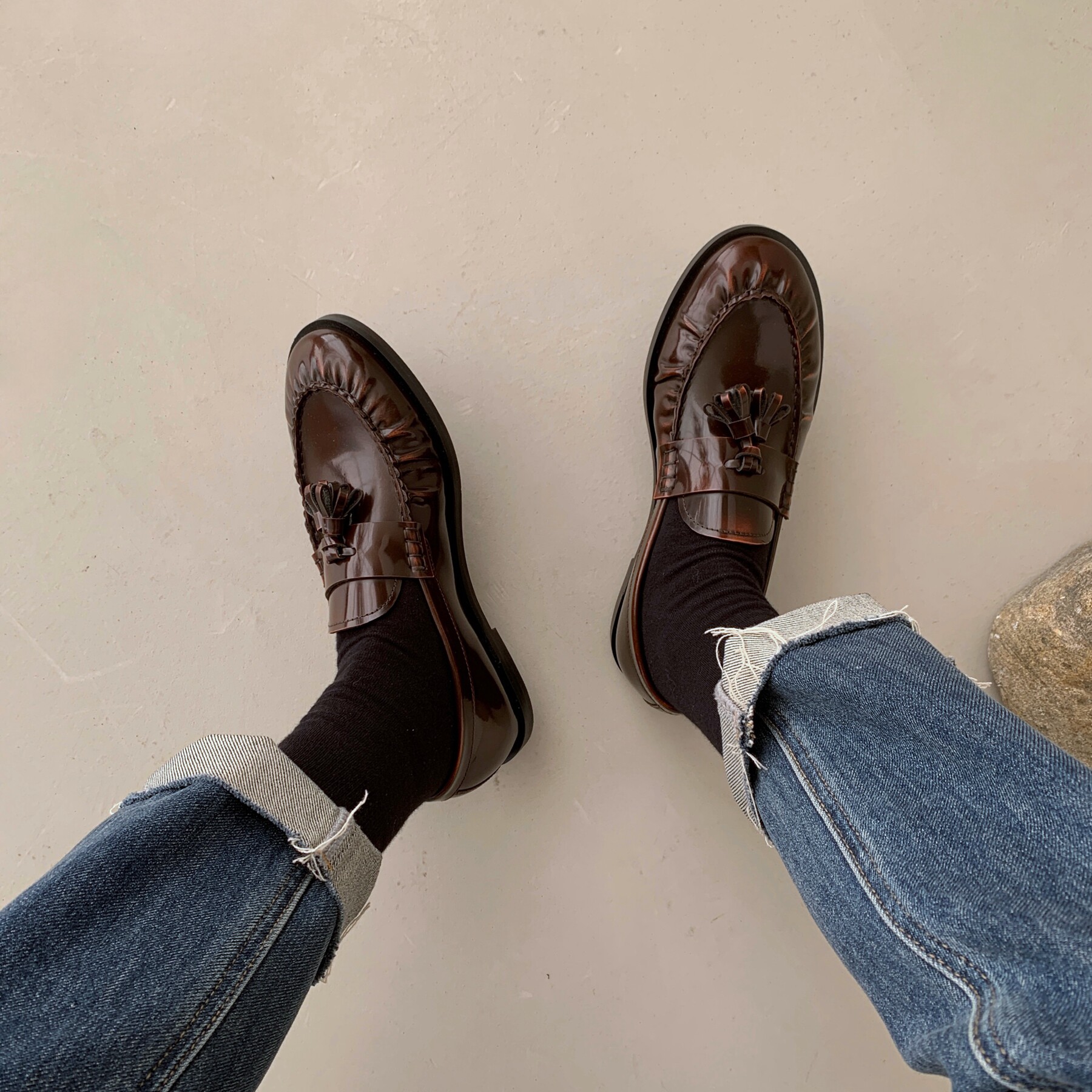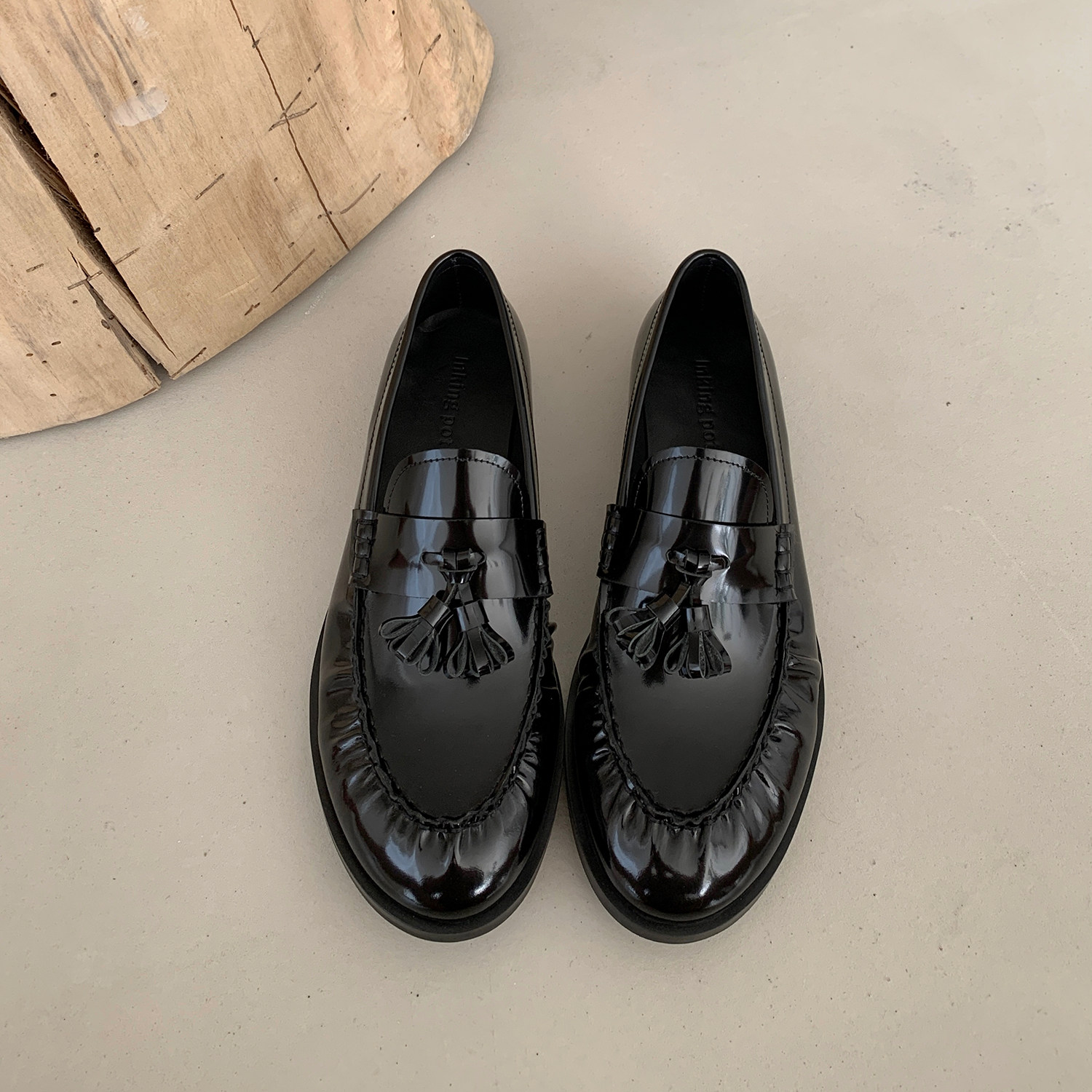 InkingPot彭姐 row家真皮流苏乐福鞋英伦风平跟圆头学院风小皮鞋