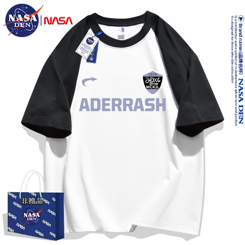 NASA联名男女款短袖插肩重磅纯棉T恤夏季宽松潮流印花宽松五分袖