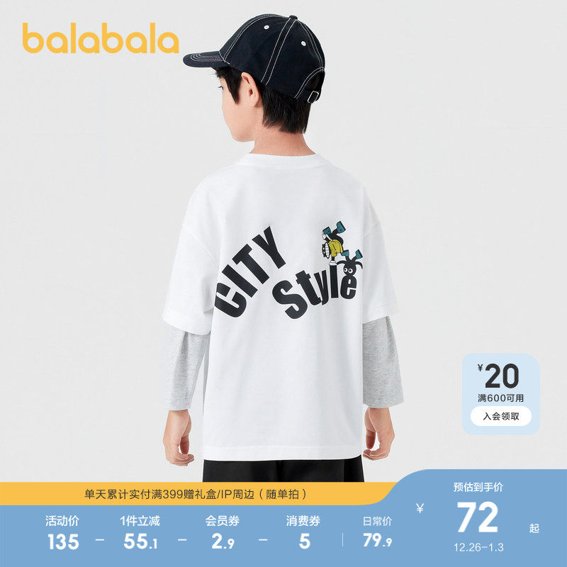 巴拉巴拉童装儿童长袖t恤男童女童2025春夏装假两件t休闲百搭上衣