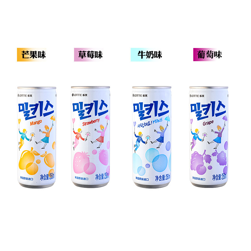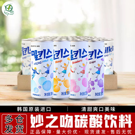 韩国进口乐天妙之吻苏打水碳酸饮料250ml*30罐牛奶芒果草莓味整箱