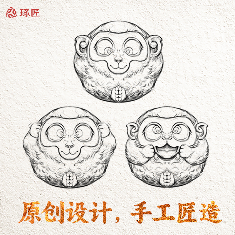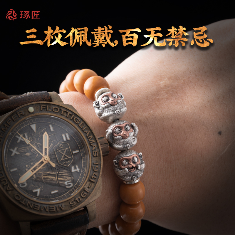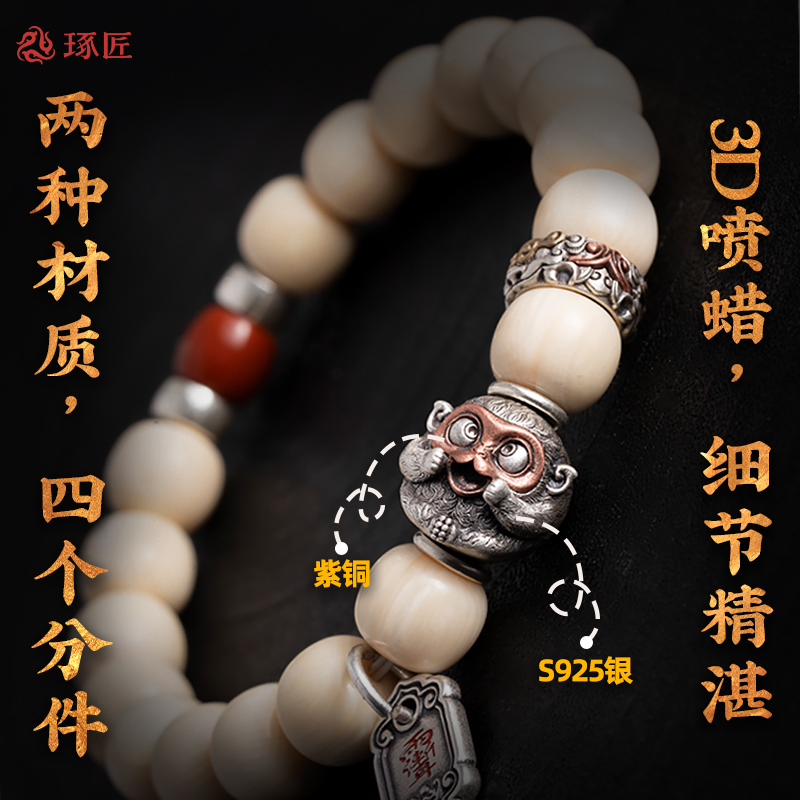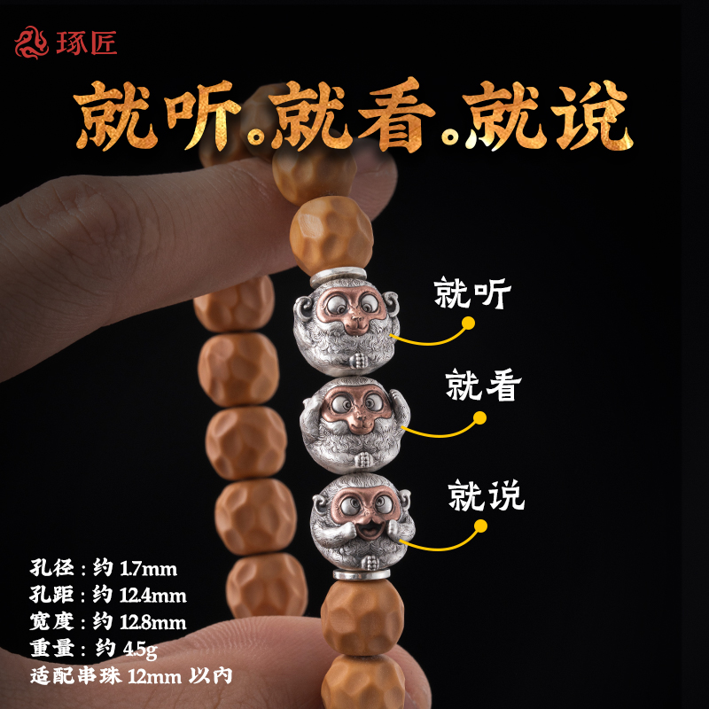 琢匠无忌猴隔珠手串配饰猴头配珠文玩散珠星月菩提猴子银饰配件