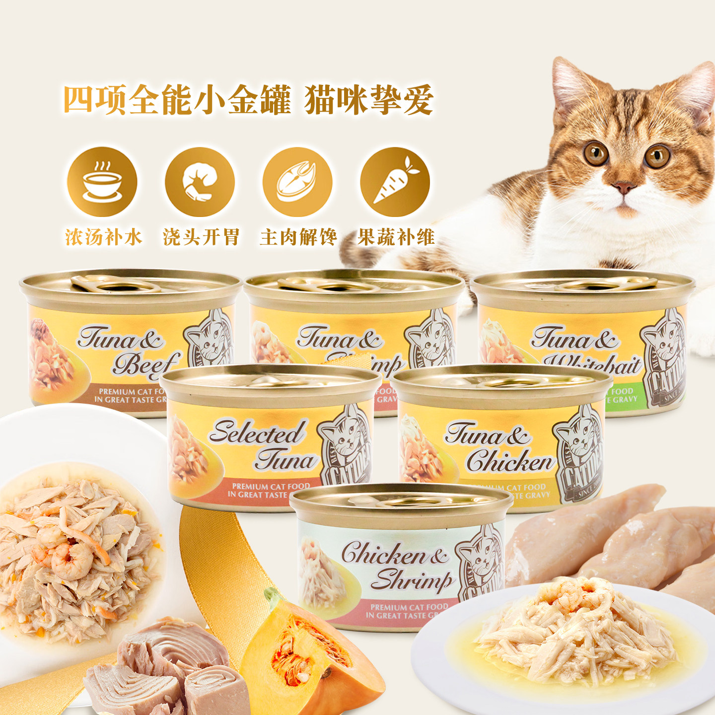 土猫宠物 泰国进口猫乐适真挚小金罐猫罐头金枪鱼浓汤营养补水85g