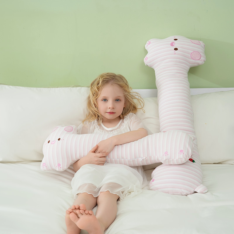 意屋语粉色猫条长条抱枕女孩生日礼物纯棉陪伴睡觉布娃娃可拆洗