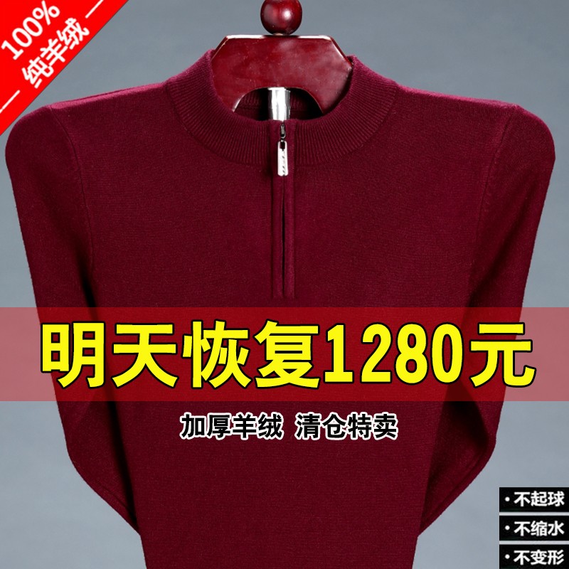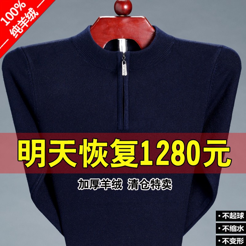 清仓特价鄂尔多斯市羊绒衫男纯羊绒毛衣大码加厚拉链中老年羊毛衫
