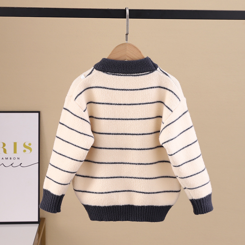 条纹男童毛衣套头卡通小狗打底衣