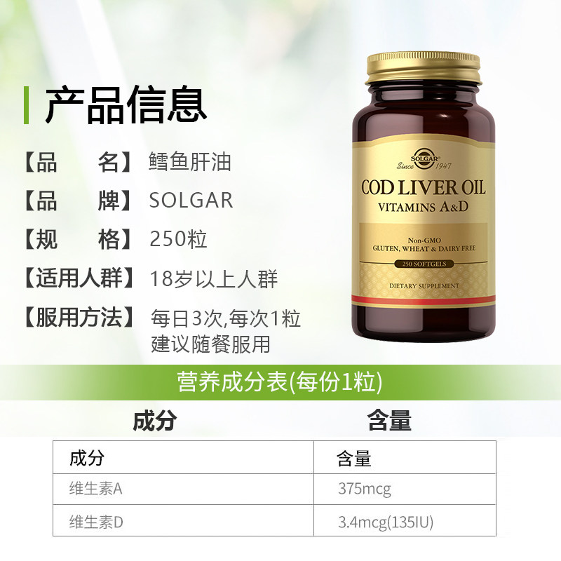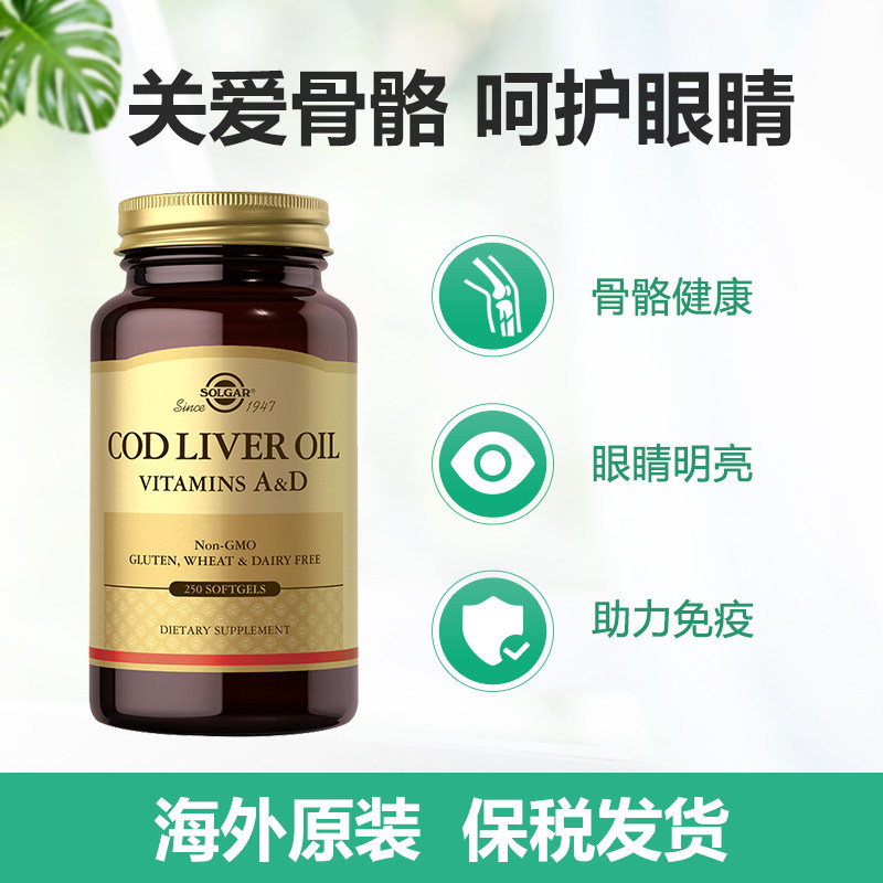 solgar美国进口鳕鱼肝油软胶囊青少年中老年成人护眼补充维生素ad