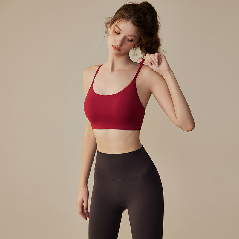 瑜伽吊带背心女细肩带普拉提美背可外穿运动内衣红色跑步文胸bra