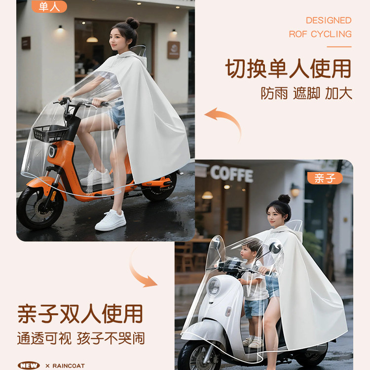 雨衣电动电瓶车亲子女双人全身防暴雨母子带小孩加大加厚2人雨披