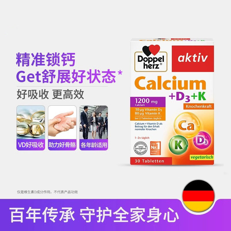 【自营】德国双心vk维生素d3骨质疏松抽筋男女中老年成人补钙片*3