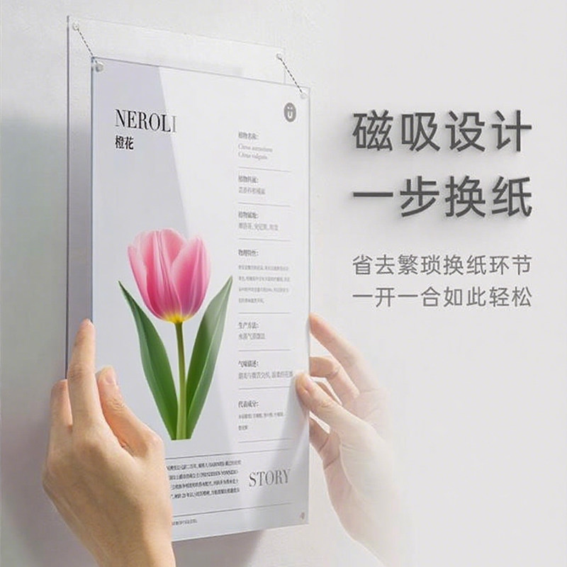 相框挂墙免打孔A4亚克力透明悬浮磁吸海报展示架A3证件奖状照片墙