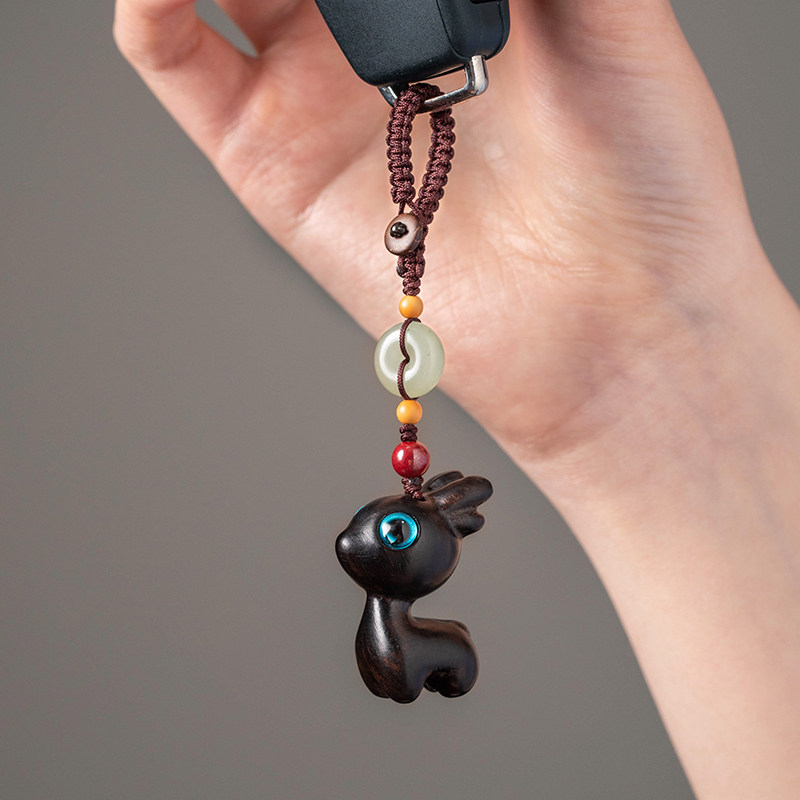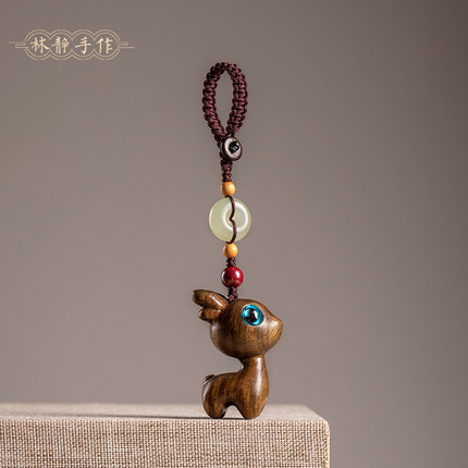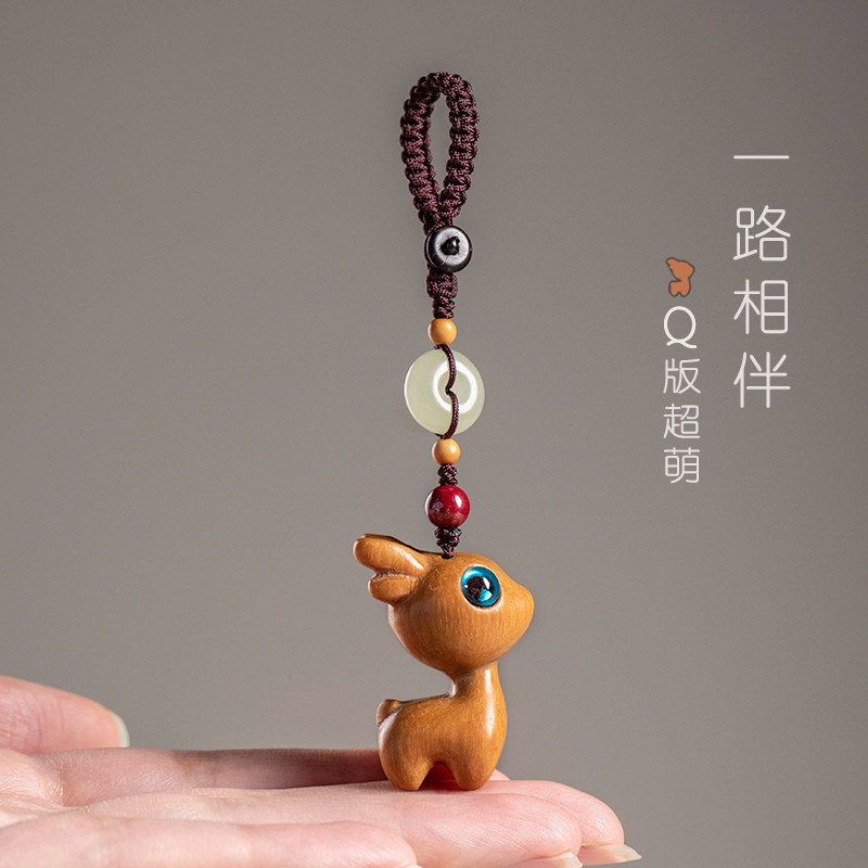 小鹿钥匙挂件可爱檀木汽车钥匙扣钥匙圈环情侣精致手机链挂饰礼物
