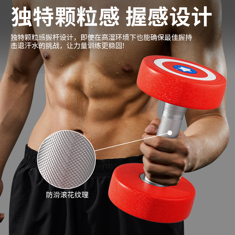 哑铃男士健身家用纯钢实心美国亚铃队长pu套装20公斤5kg10kg一对