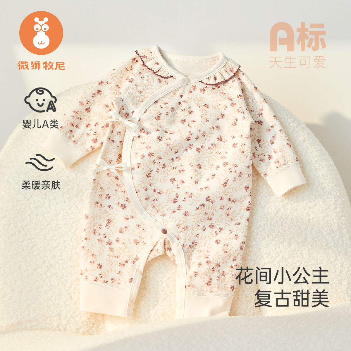 微狮牧尼新生儿衣服秋冬季小月龄宝宝秋装纯棉连体衣初生婴儿哈衣