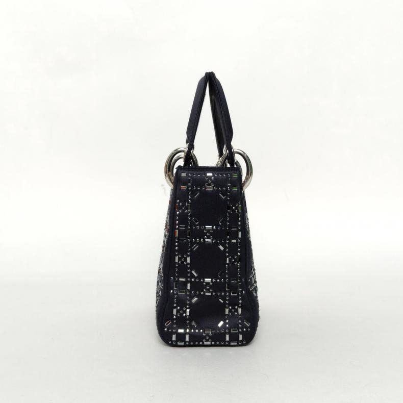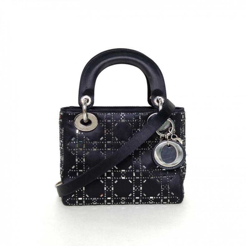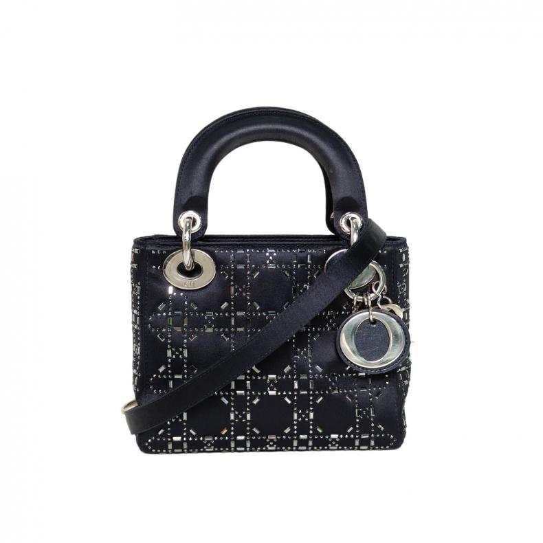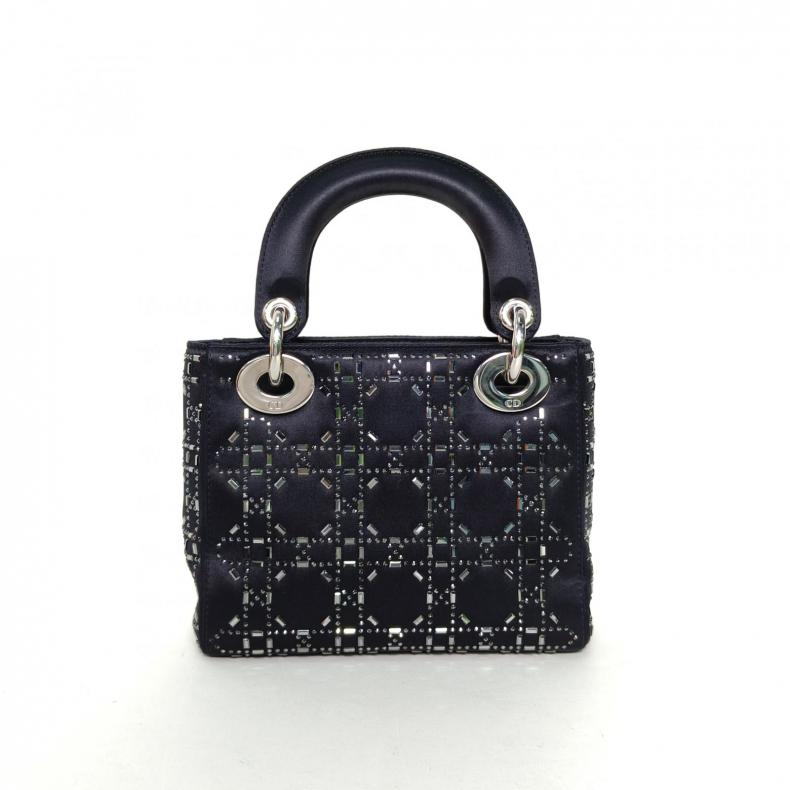 【自营】中古9新Dior/迪奥单肩包Lady戴妃包三格黑色缎面镜面珠饰