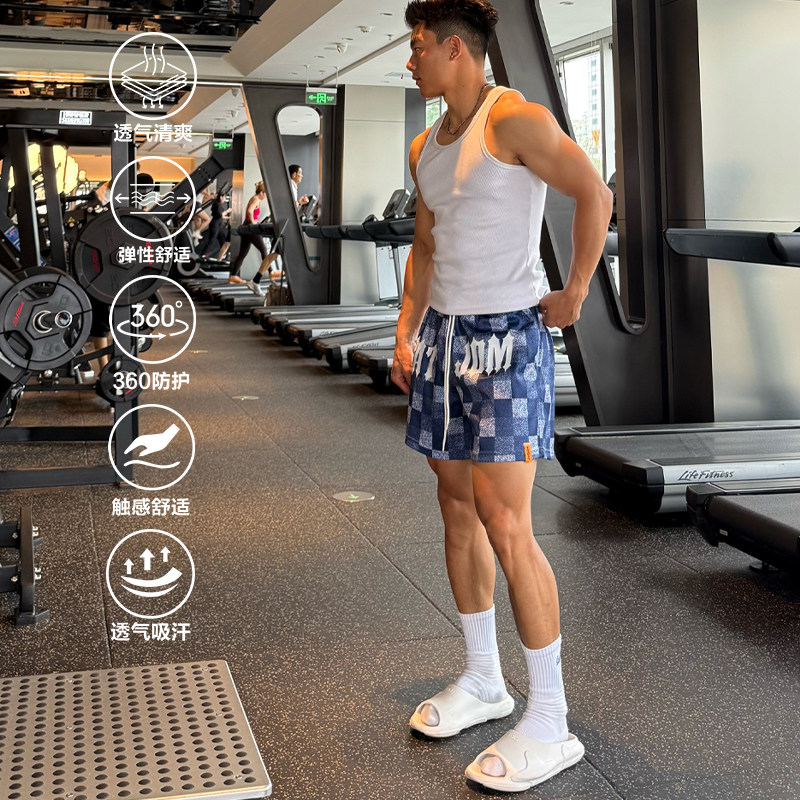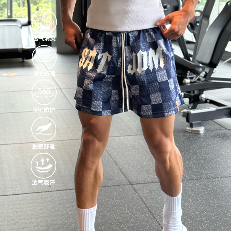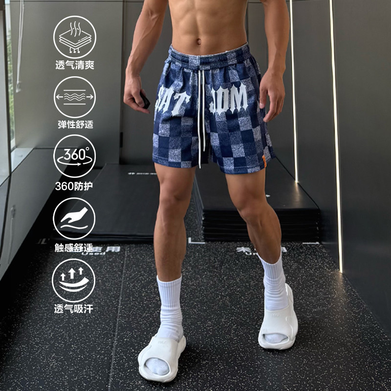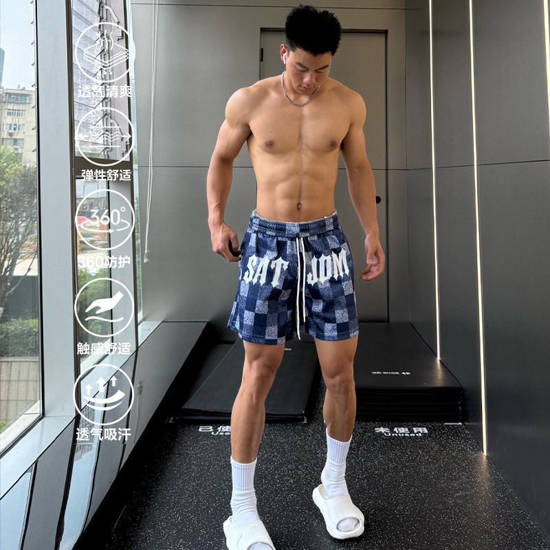 Satjdm原创美式短裤格纹四分裤三分篮球训练运动休闲健身跑步国潮