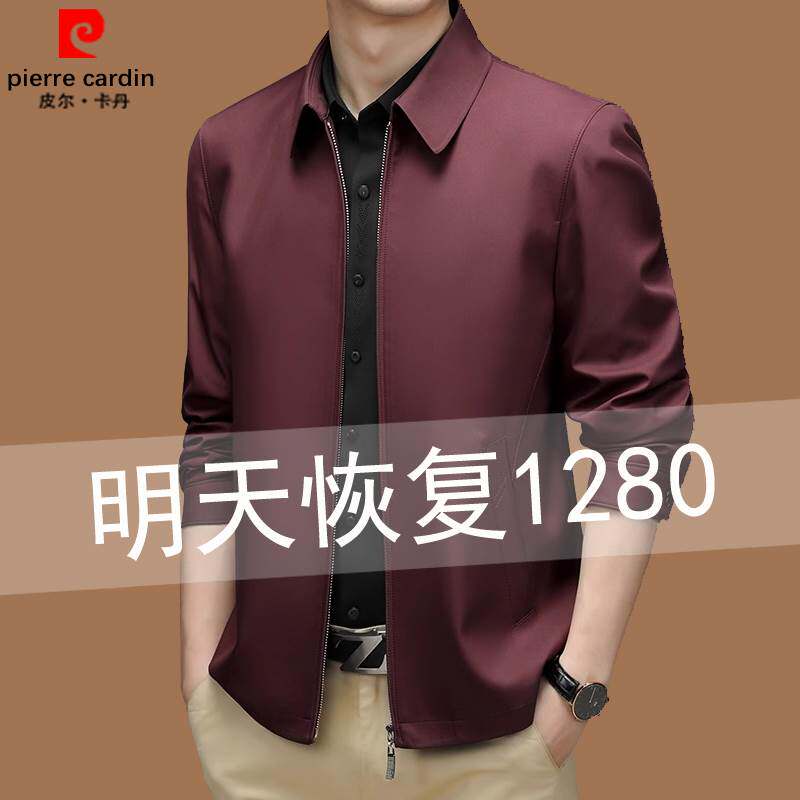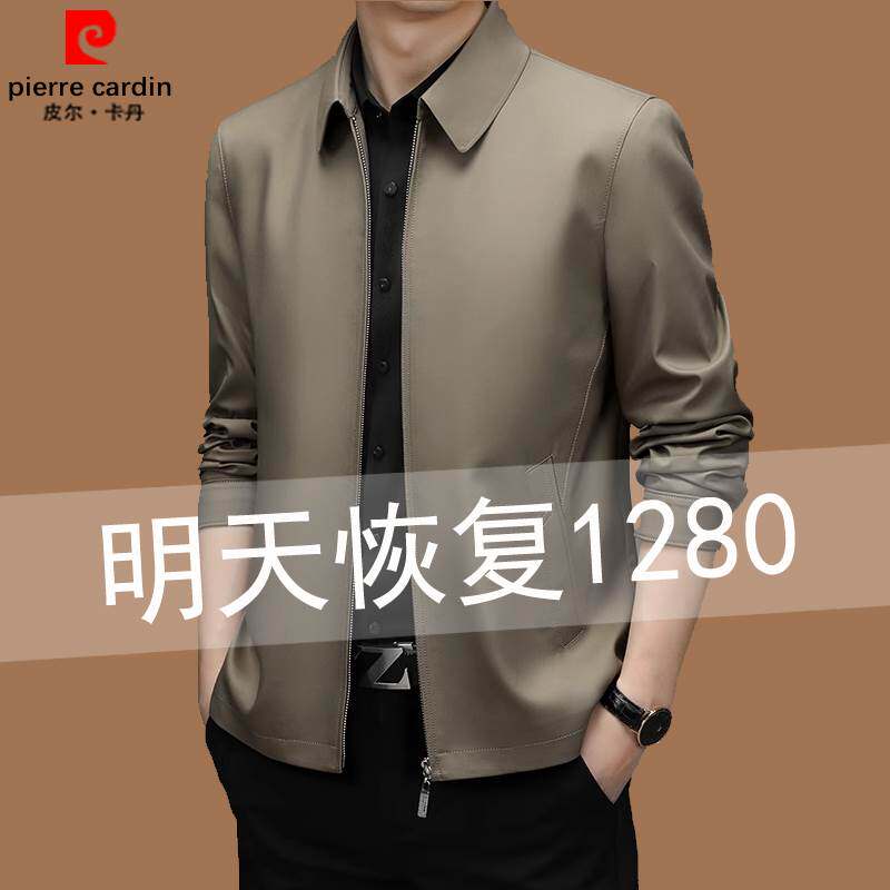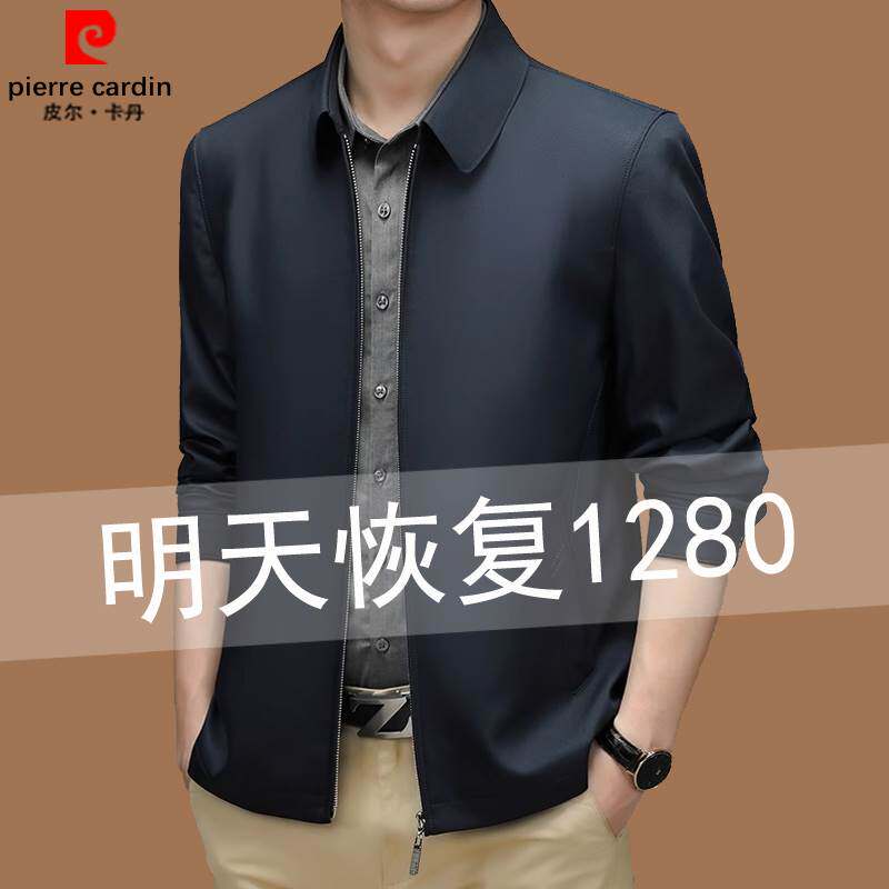 皮尔卡丹2024桑蚕丝翻领行政夹克男春秋季中青年商务休闲上衣外套