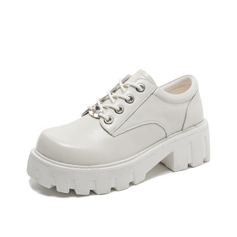 松糕单鞋真皮学院风圆头