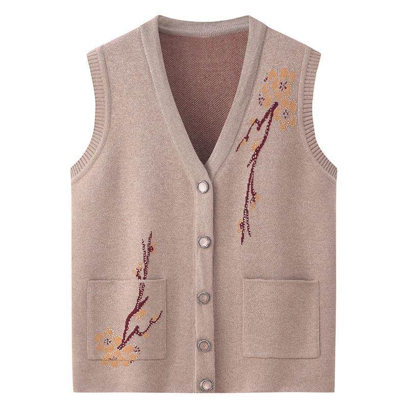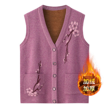 老奶奶背心妈妈中老年坎肩冬装马甲春秋老年人针织毛衣马夹女开衫