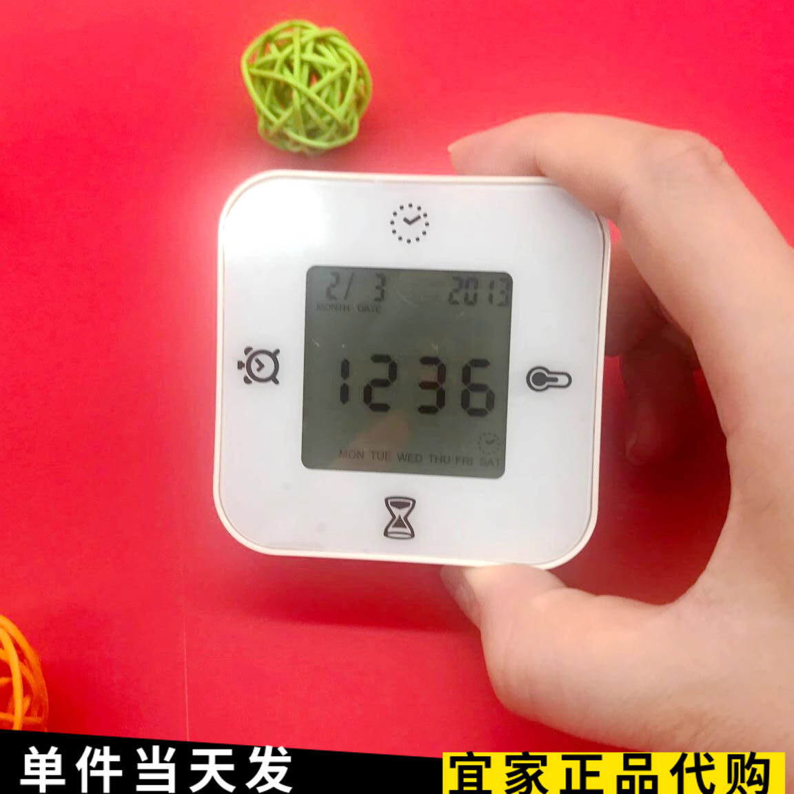 上海宜家库克斯钟温度计闹铃计时器白色台钟闹钟多功能国内代购