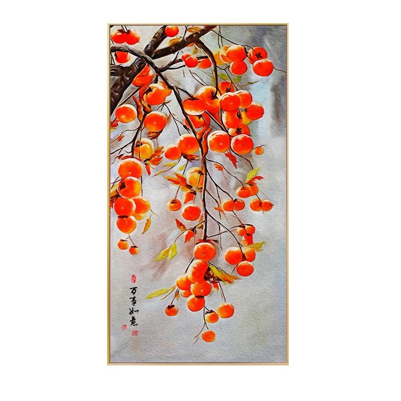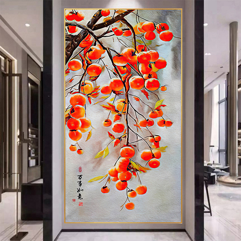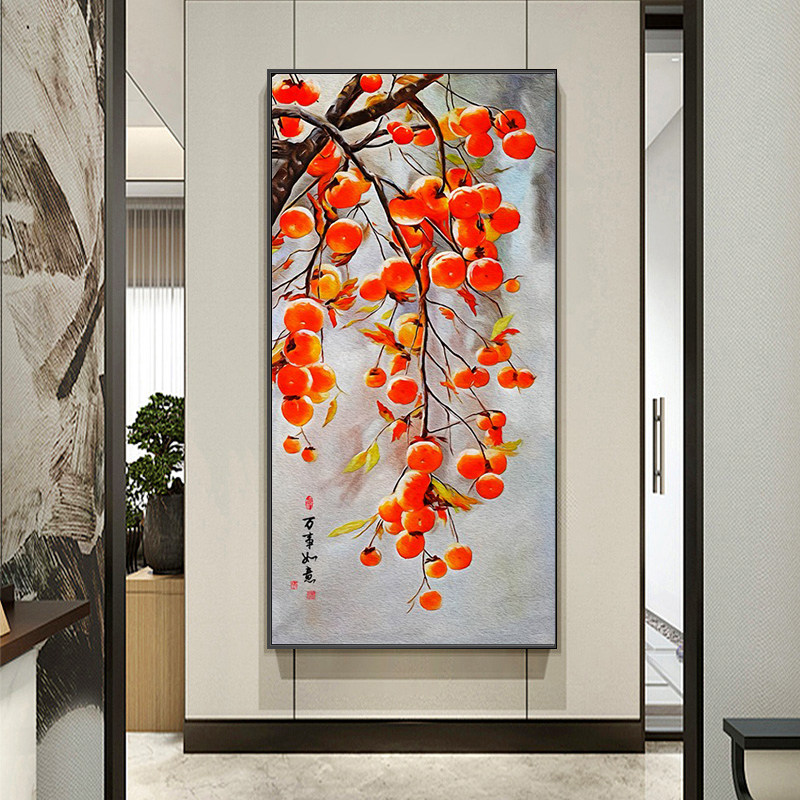 柿柿如意十字绣2025年新款线绣客厅手工自己刺绣玄关柿子竖版现代