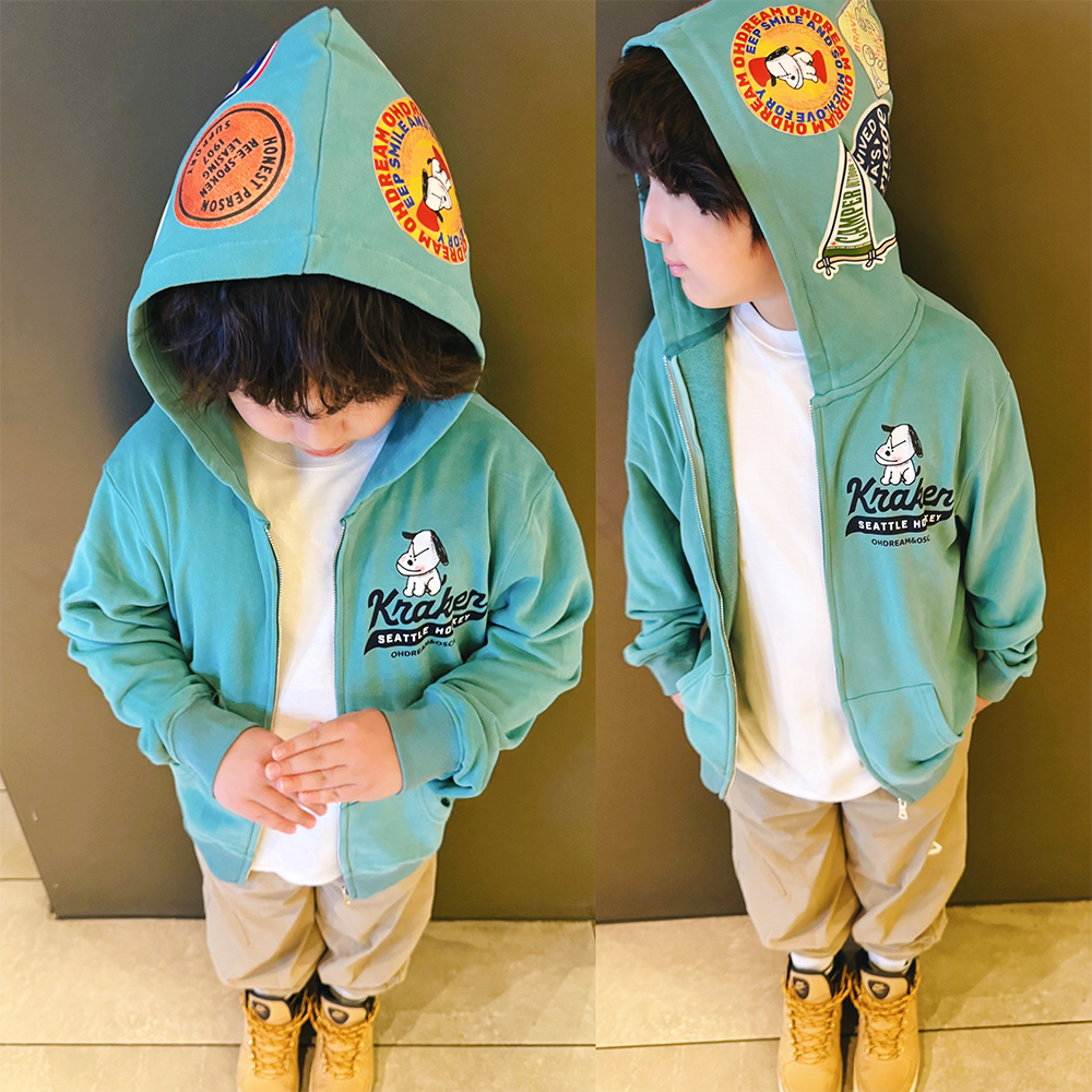 OHDREAM童装满印帽MintGreen男女童亲子拉链卫衣开衫外套
