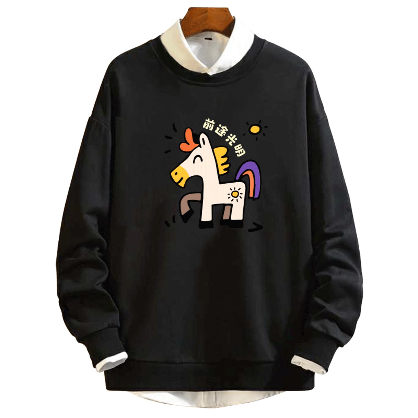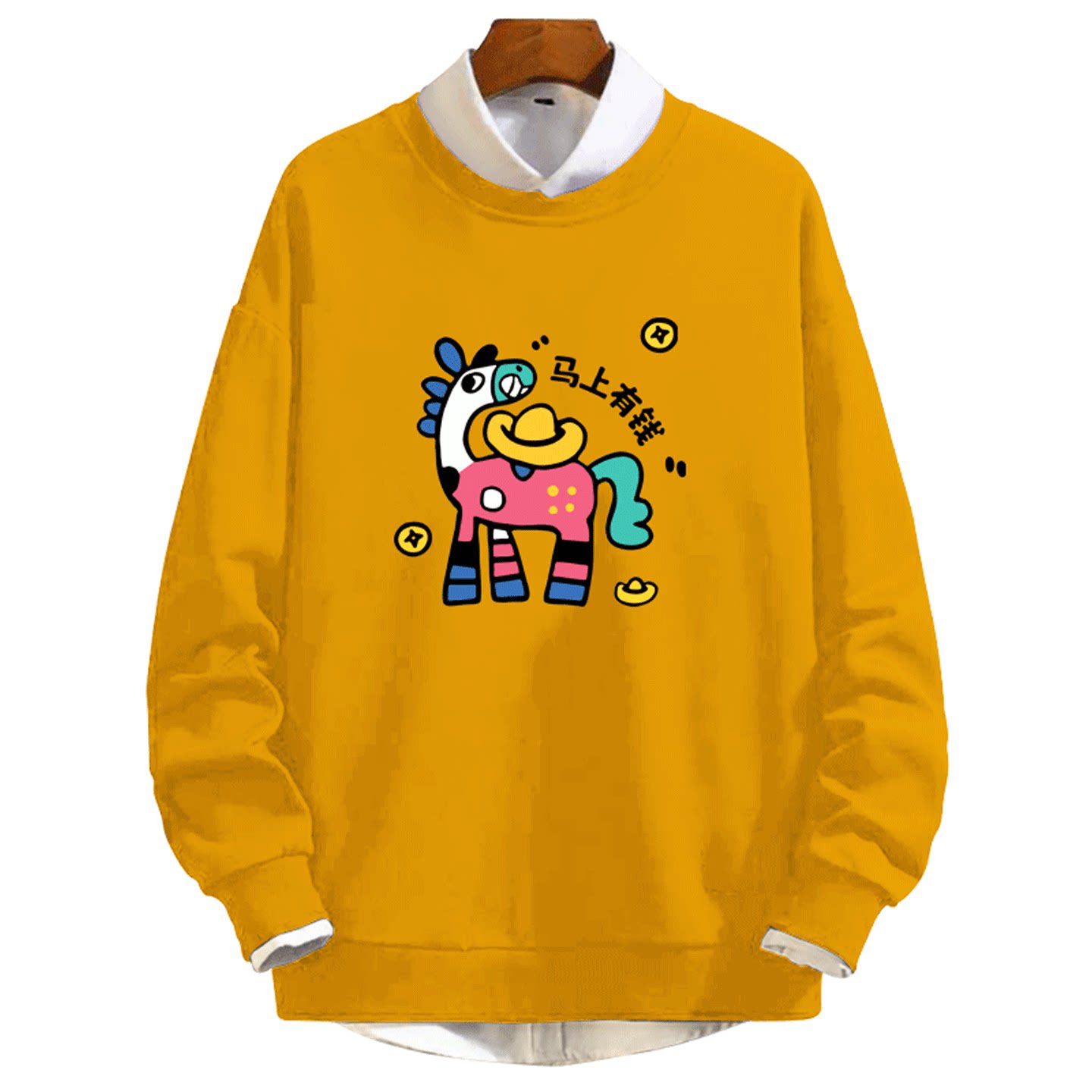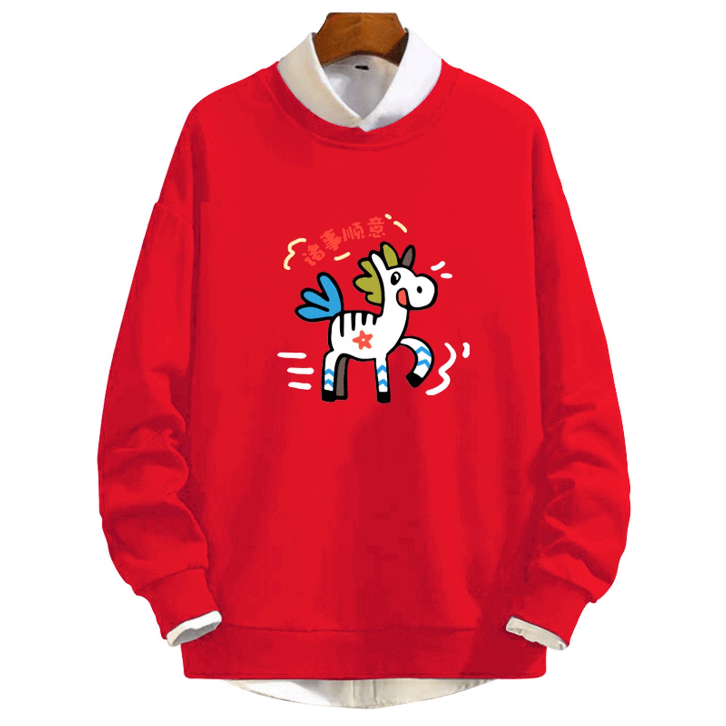 2026马年新年马上有钱卡通属相情侣定制套头圆领卫衣印花男女秋冬
